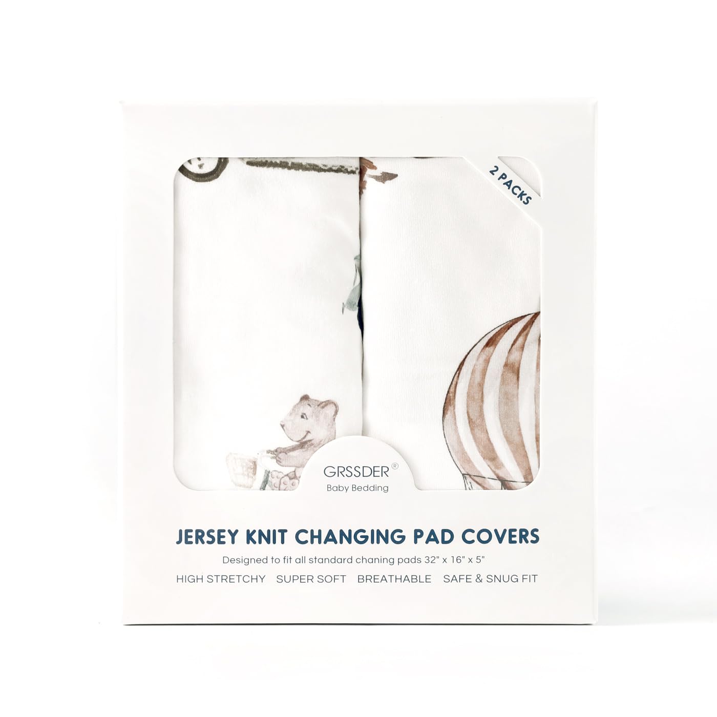 - Ultra Soft & 4-way Stretch: Made of 100% high quality soft stretchy jersey knit fabric. GRSSDER changing pad covers offer a breathable, sweat-absorbent tee shirt like feel for exceptional comfort, providing your little ones a safe and to stay in place throughout the day.