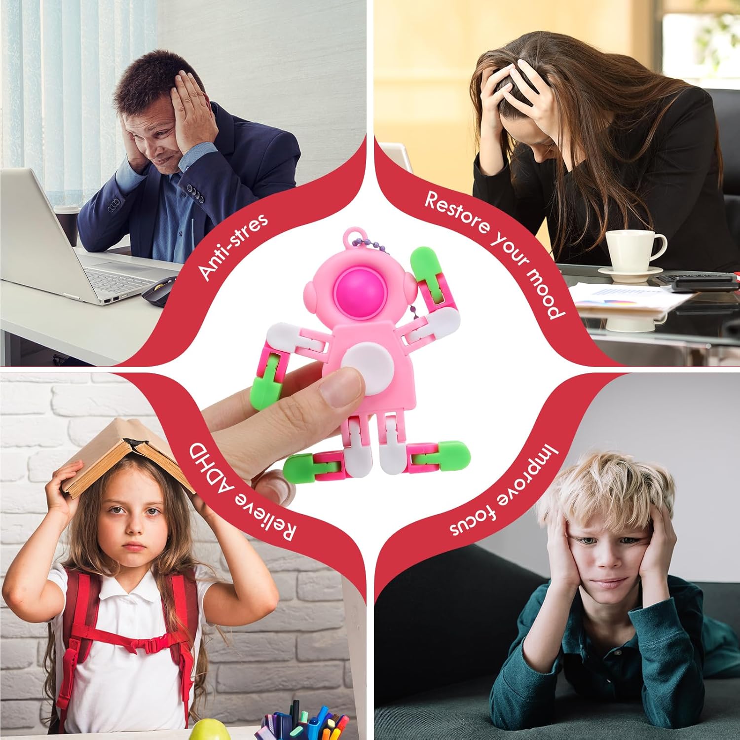 - Portable and Convenient: each robot fidget toy is small in size, and it can be easily slipped into your pockets, handbags, backpacks or bags, so you can use it in different timers and places, ideal for school, commuting, travelling, classroom, business trips and more, ideal for many people to carry and play with