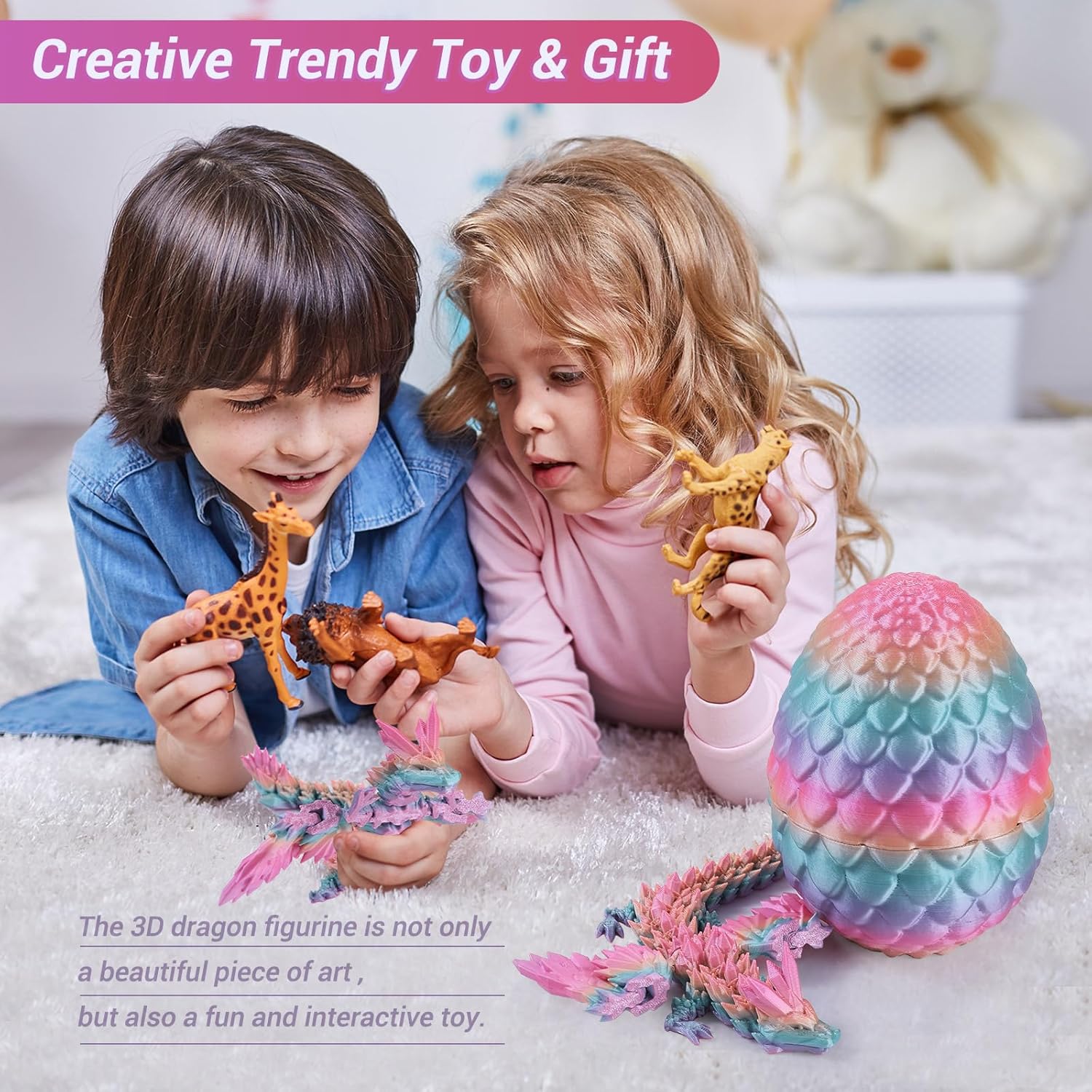 - 🐉【Mystery Dragon Egg】3D dragon eggs with dragon fidget inside includes an articulated dragon with Wings (Length 12") and an matched color egg (3.5"x 3.5"x5").