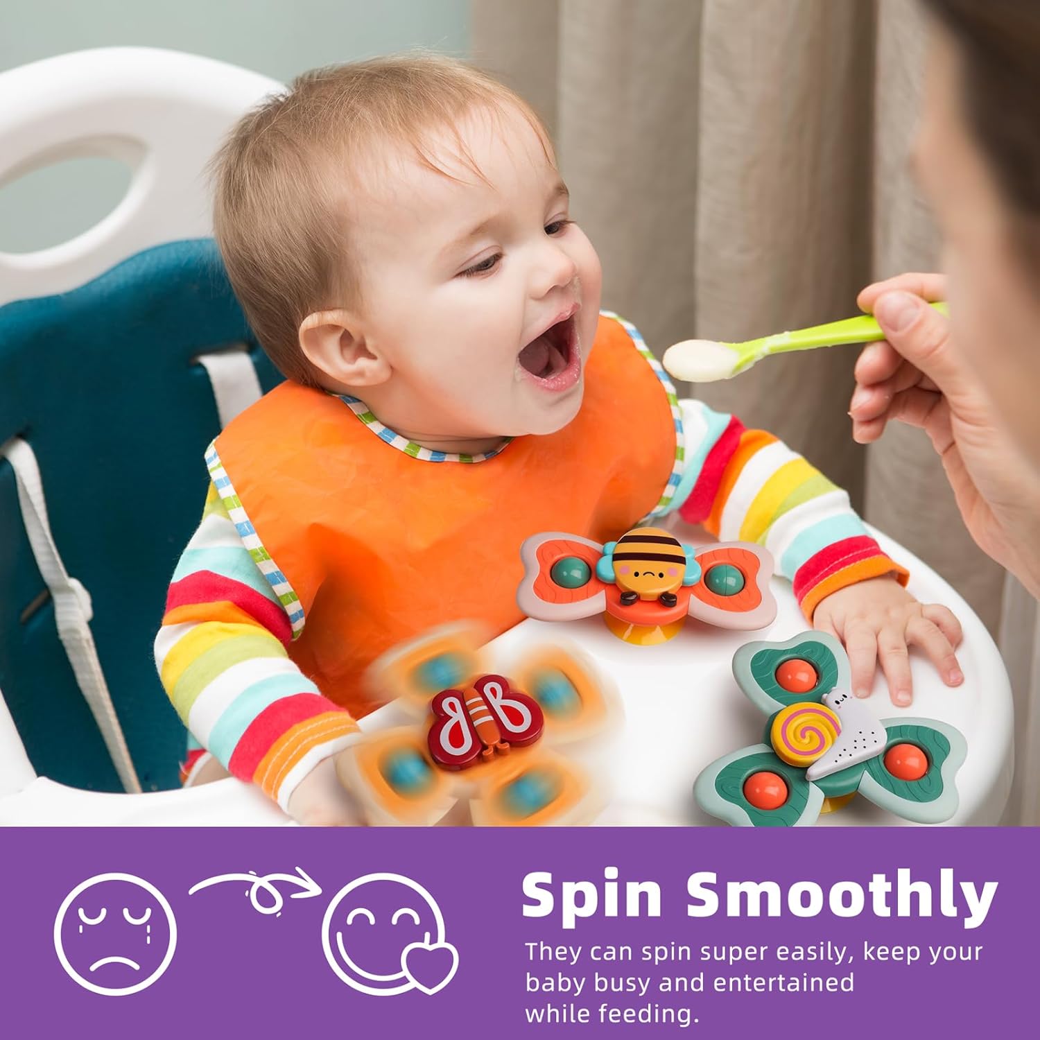 - Multi-Sensory Stimulation: Each Spinning engages your baby's sight, hearing, and touching