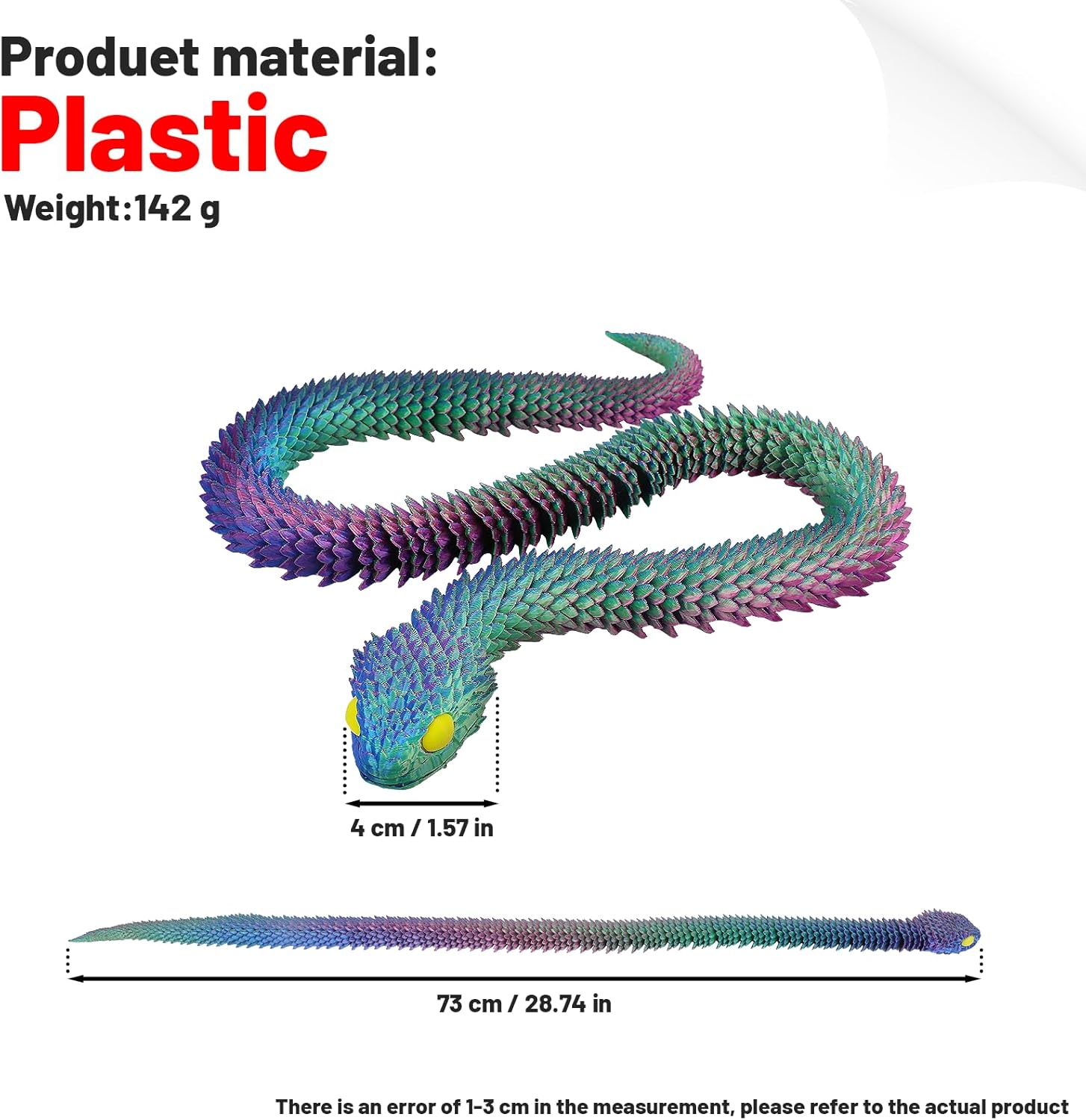 - Made with 3D printing technology, these snake toys are durable, lightweight, and exhibit a smooth finish, ensuring a long-lasting product.