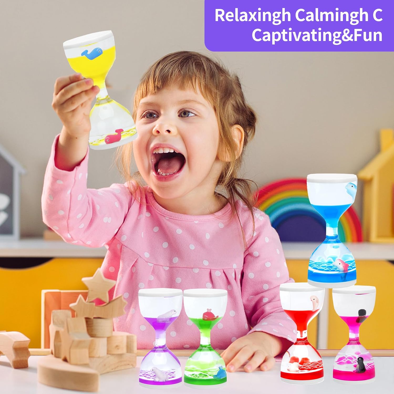 - Engaging Sensory Play: These liquid timers encourage focus and hand-eye coordination as kids watch the colorful liquid slowly change colors and flow from top to bottom.