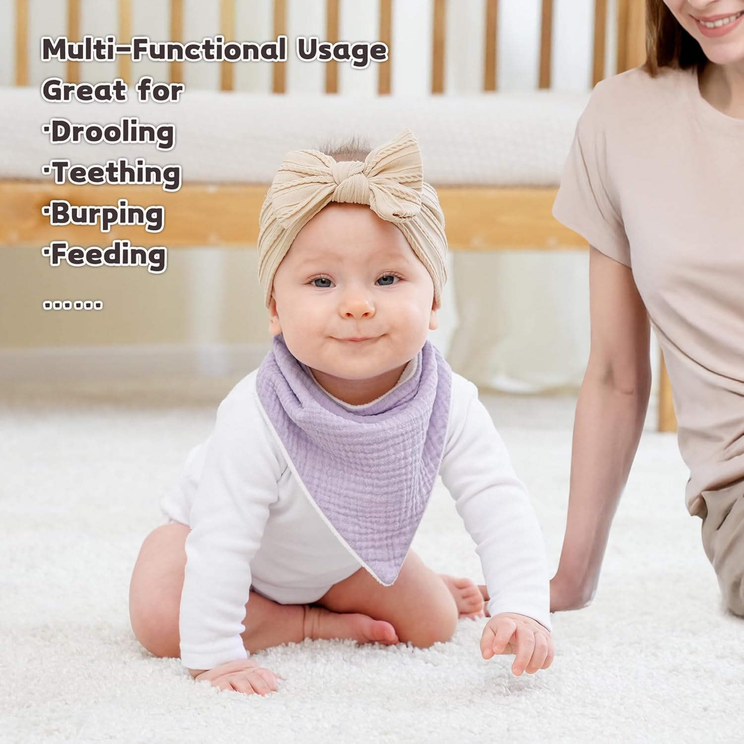 Susurration Muslin Baby Bibs 10Pack Baby Bandana Drool Bibs Soft Adjustable Newborn Bibs for Unisex Baby Girls & Boys (Pinkpurple)