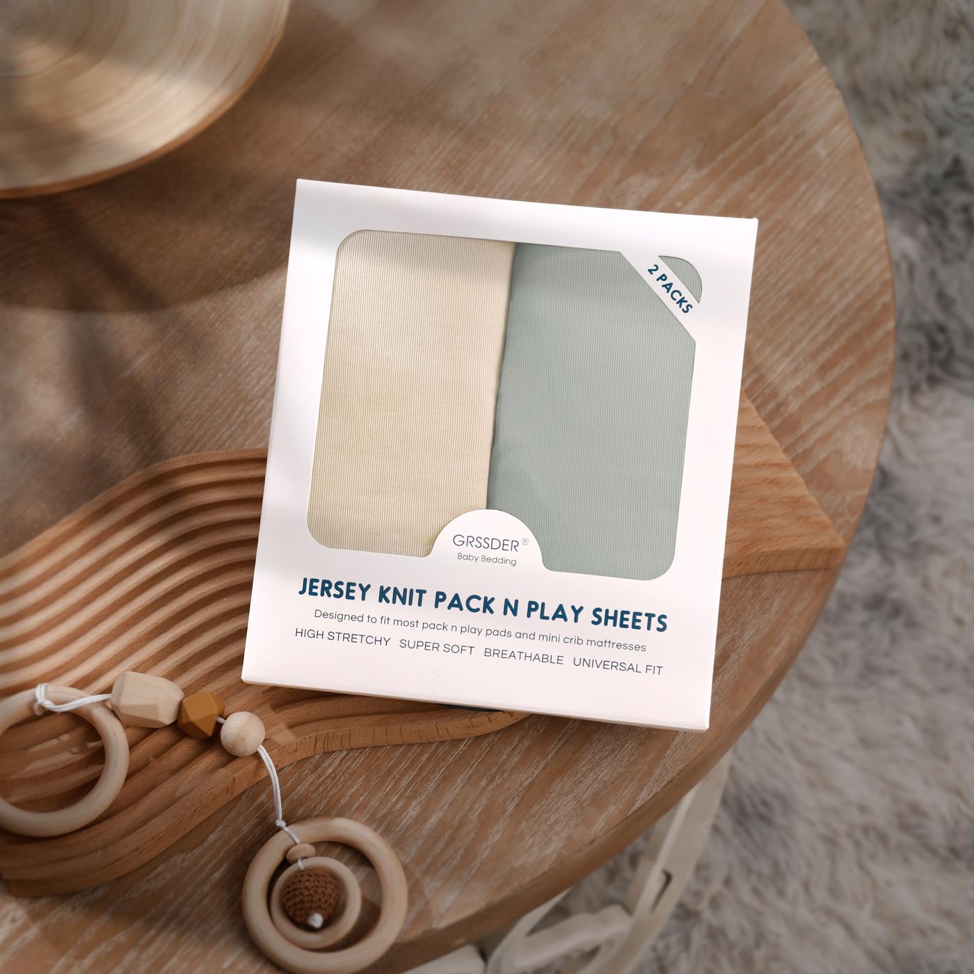 - Ultra Soft & 4-way Stretch: Made of high quality soft stretchy jersey knit fabric. GRSSDER mini crib sheets offer a breathable, sweat-absorbent tee shirt like feel for exceptional comfort, providing your little ones a safe and to stay in place throughout the day.