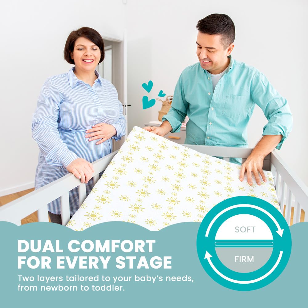 - Durable & Lightweight for Everyday Use: Designed for long-lasting use, this baby bed mattress is lightweight, portable, and ideal for mini cribs or toddler beds, giving your child comfort on the go.