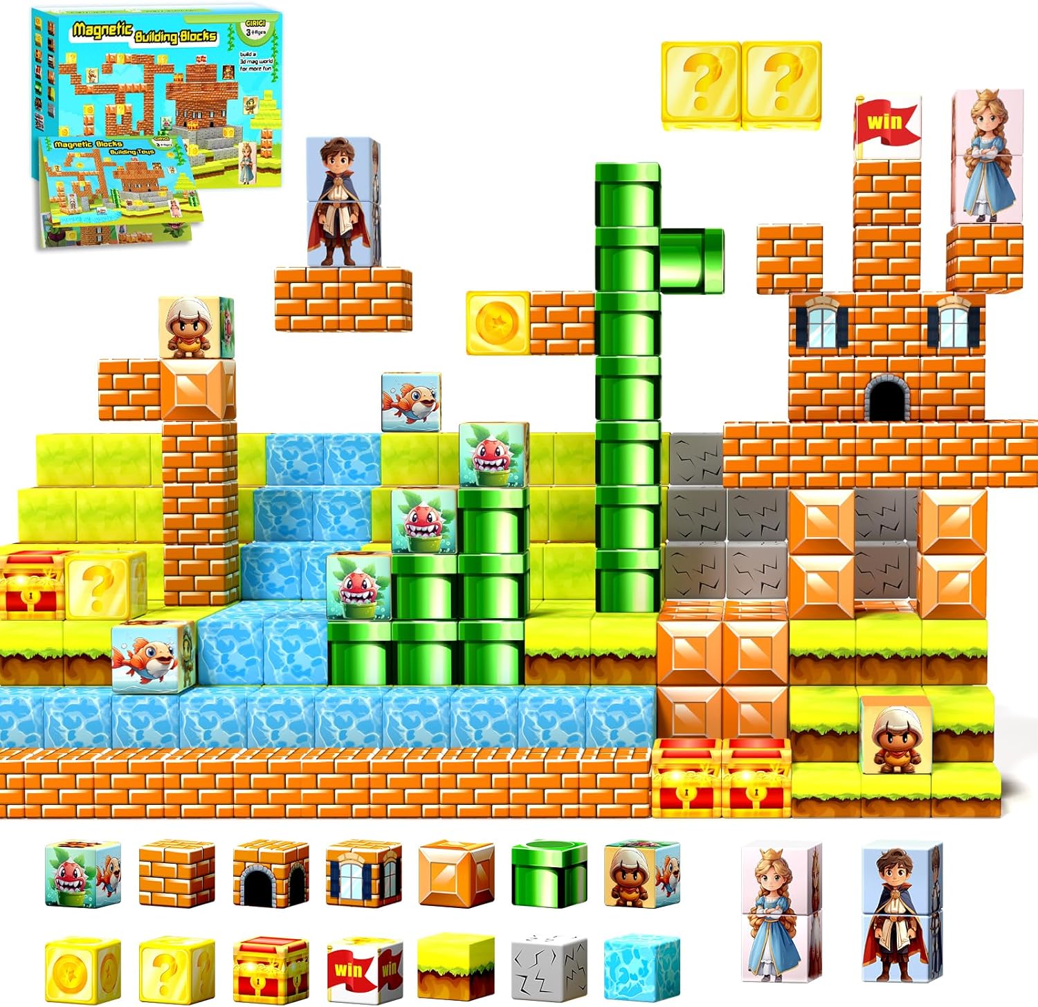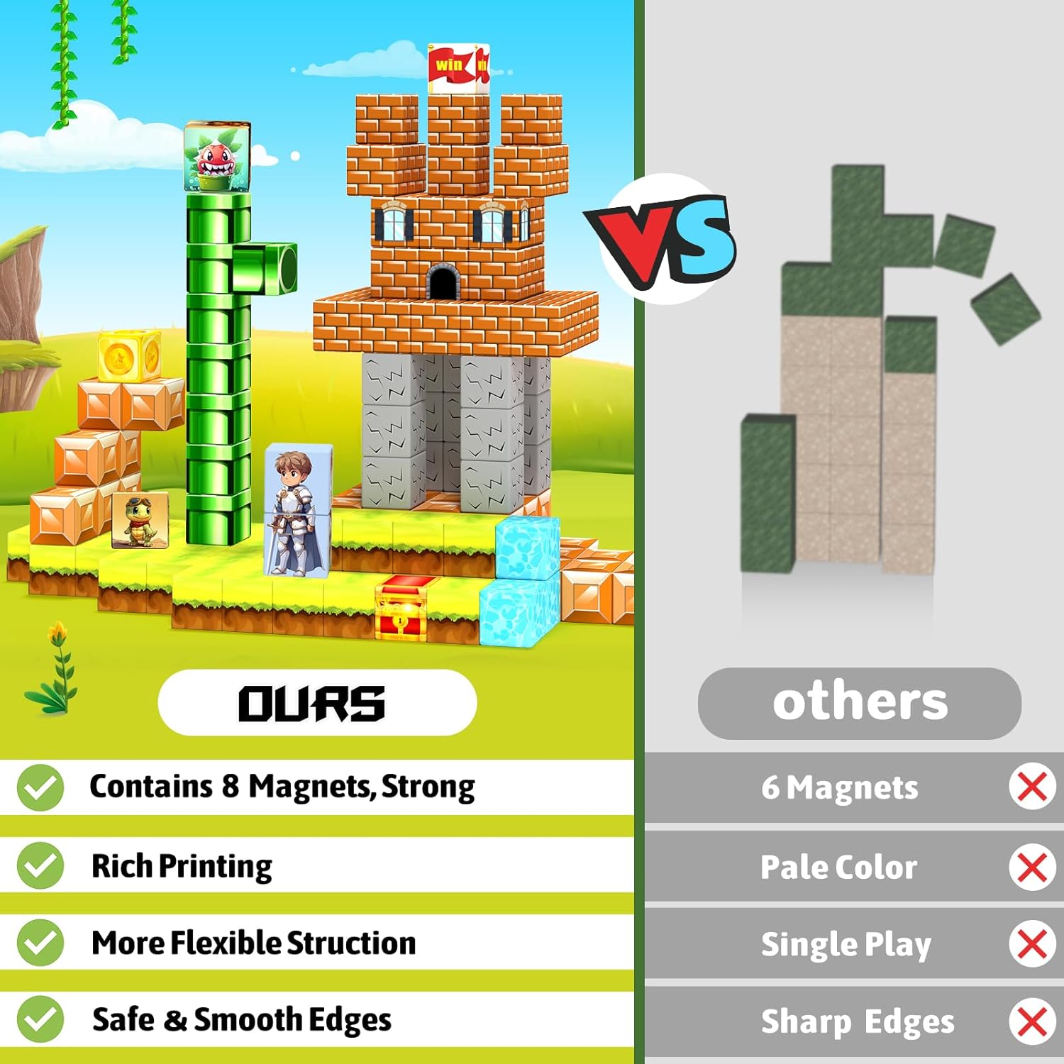 - 【Magnetic Blocks】Let's embark on an adventure with magnetic building blocks! Spark the imagination of children with our magnet blocks toys, perfect for kids ages 4-8. These magnetic blocks encourage open-ended play, allowing kids to construct, demolish, and rebuild as they please.Safe,durable,and designed for little hands,with super strong internal magnetic, which is easier for toddlers ages 3+ to stick the cubes together and make builds sturdy.