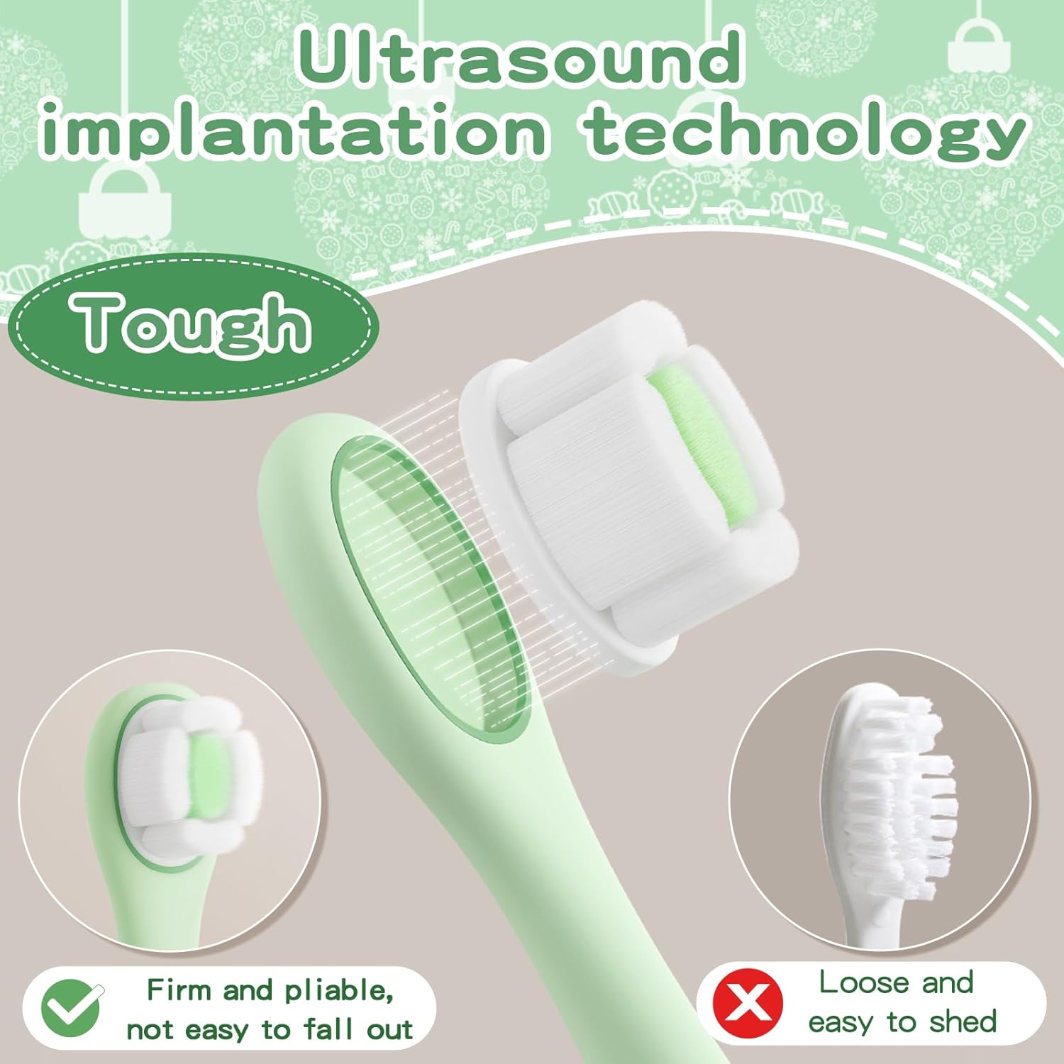 - SOFT BRISTLE TOOTHBRUSH GENTLE TO BABY MOUTH: Super soft bristles can gently and efficiently clean baby's teeth and gums, giving baby a clean teething mouth. This baby toothbrush is made of soft, good quality bristle material with ultrasonic embedding technology, the toothbrush bristles are not easy to fall off