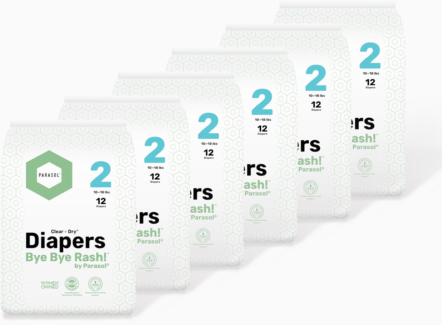 PARASOL Clear+Dry Disposable Diapers | RashShield Protection, Leakproof Design, Hypoallergenic Diaper Set | Size 2 (10-18 lbs.) 72 Count