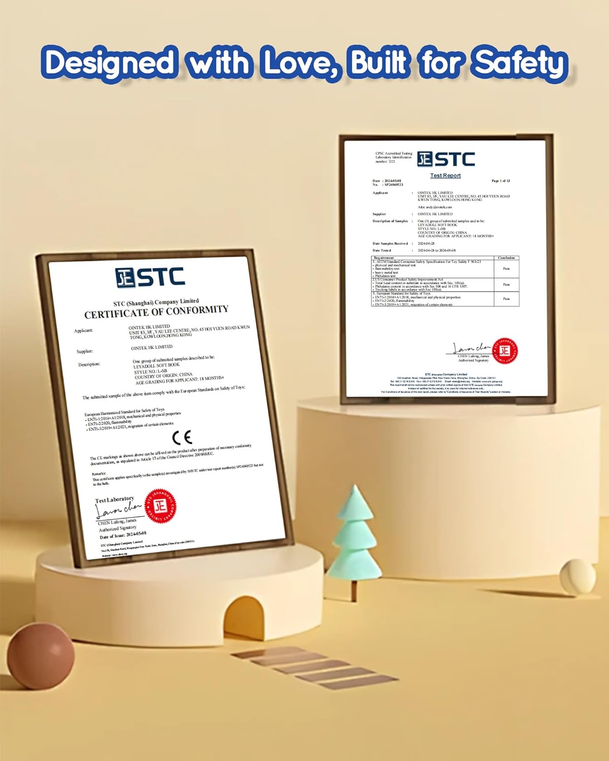 - 🛡Safety First: ---Rest assured with our internationally certified, non-toxic baby book. Soft, secure edges and robust components ensure safe and enjoyable learning experiences for infants and toddlers.