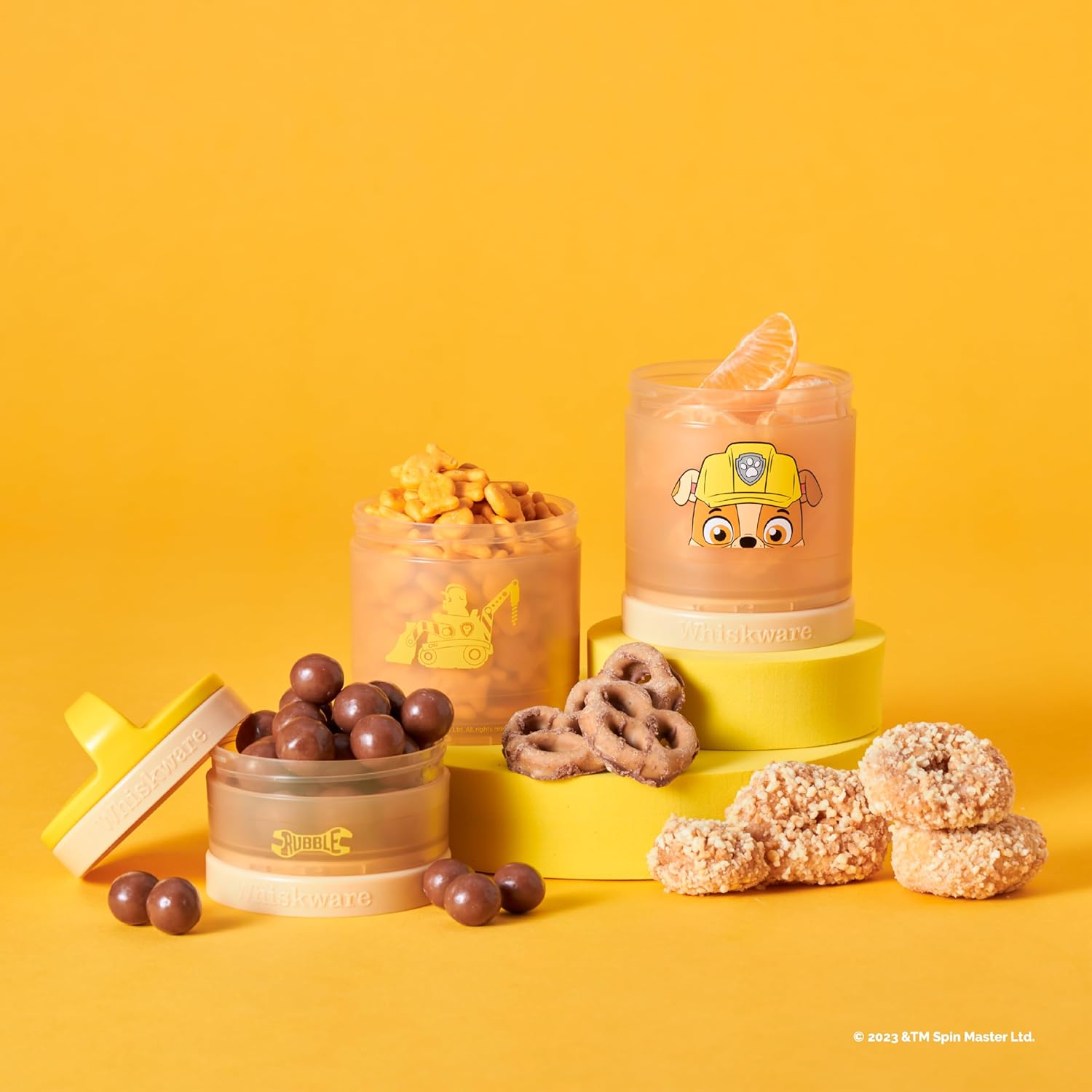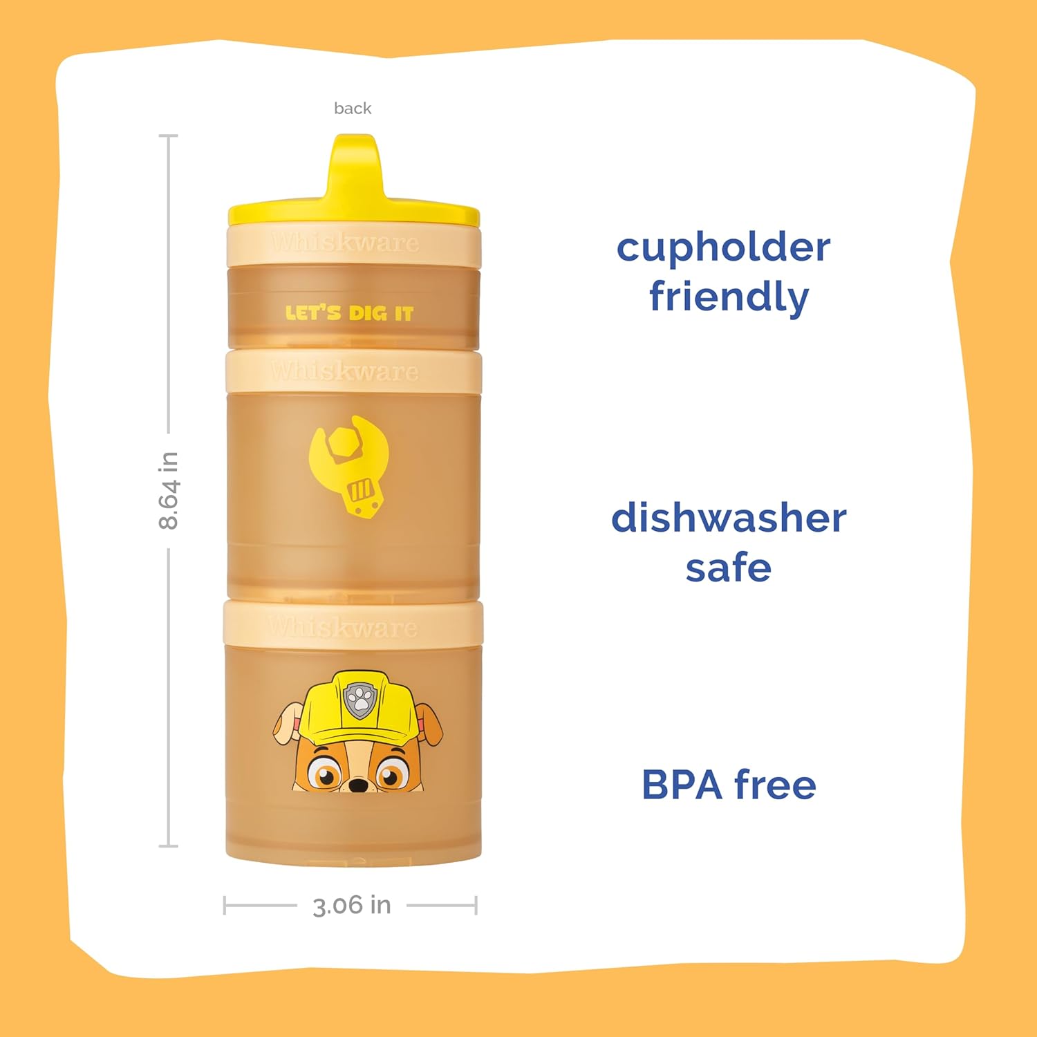 Whiskware Paw Patrol Stackable Snack Containers for Kids and Toddlers, 3 Stackable Snack Cups for School and Travel, Rubble