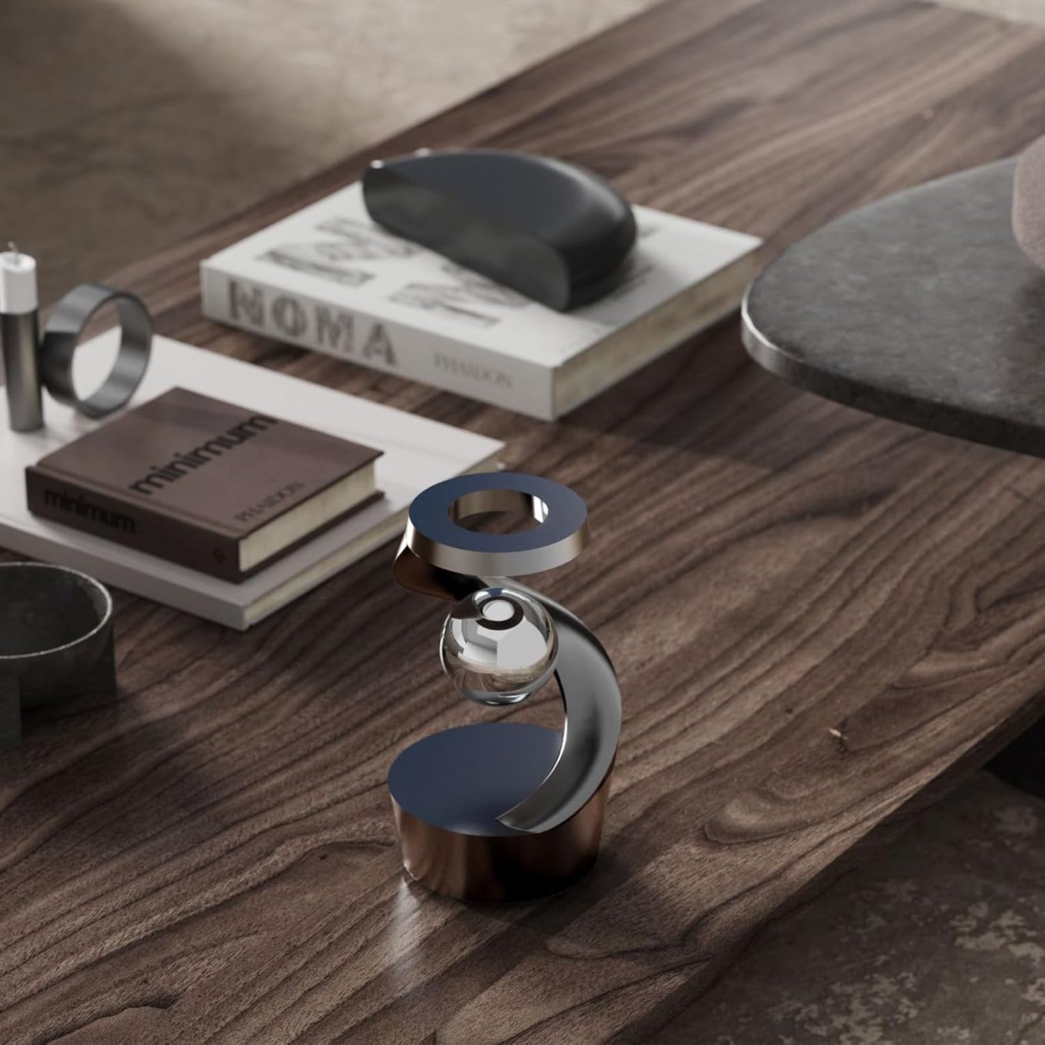 - 【Durable and Stylish】Crafted from aluminum alloy and finished with an anodized coating, this Gravity Defying Kinetic Desk Toy offers superior durability and scratch resistance. Its spheres are stainless steel, mirror-polished, and PVD coated for a sleek look.