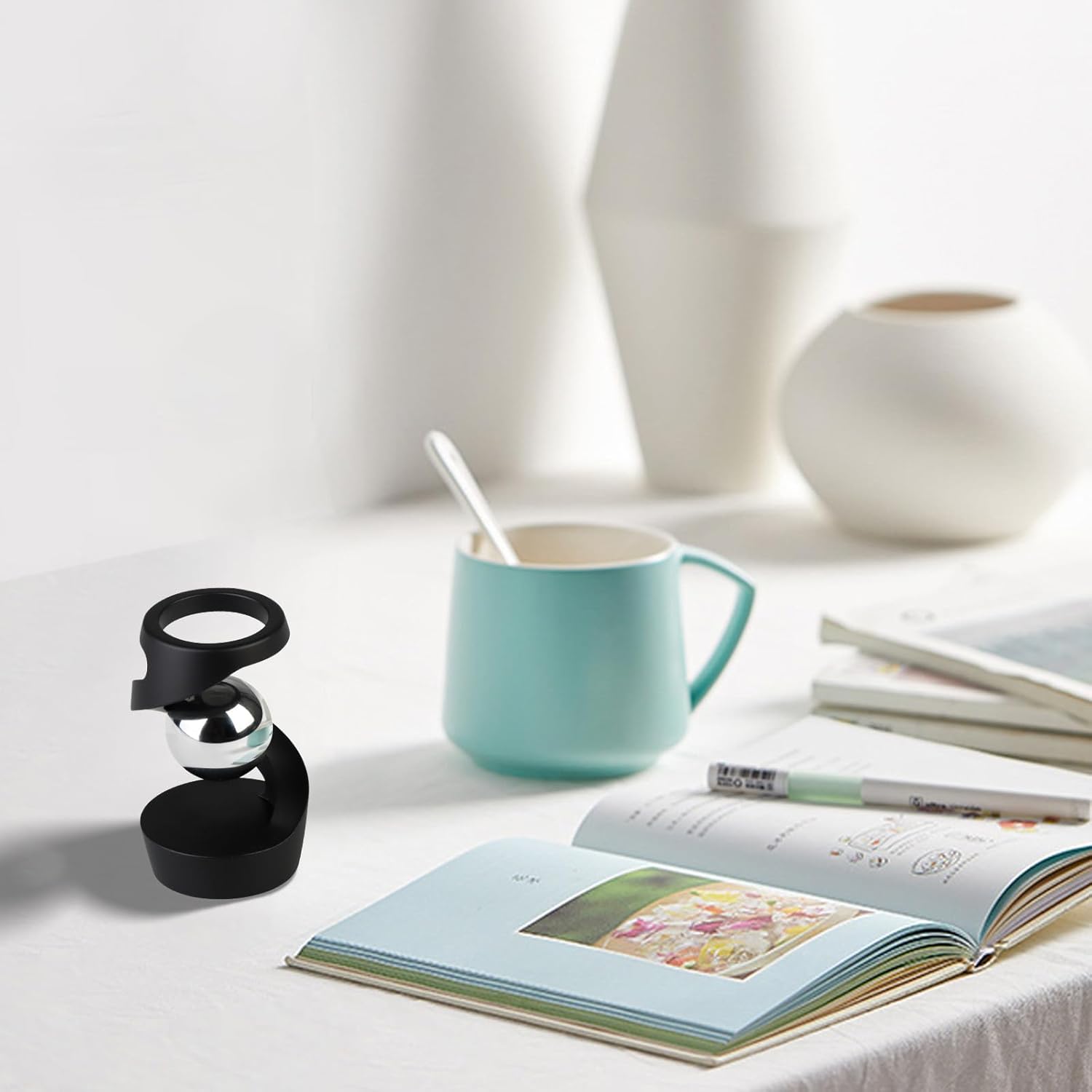 Gravity Defying Kinetic Desk Toy, Desktop Suspended Gyroscope, Executive Desk Toy Levitating Spinning Metal, Rotating Spinner with Floating Ball for Desktop Decor (Black)
