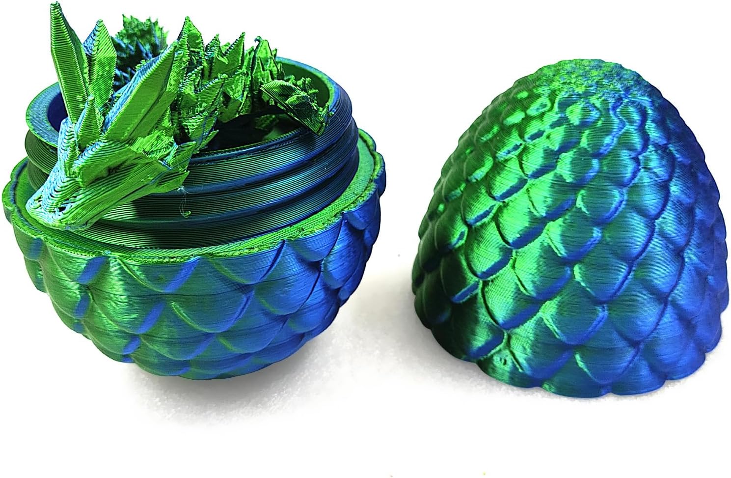 3D Printed Dragon in Egg with Dragon Inside,Dragon Surprise Egg,Flexible Joints Home Office Dragon Decor Executive Desk Toys for Autism/ADHD,Crystal Dragon Eggs Fidget Toy (Laser Green)