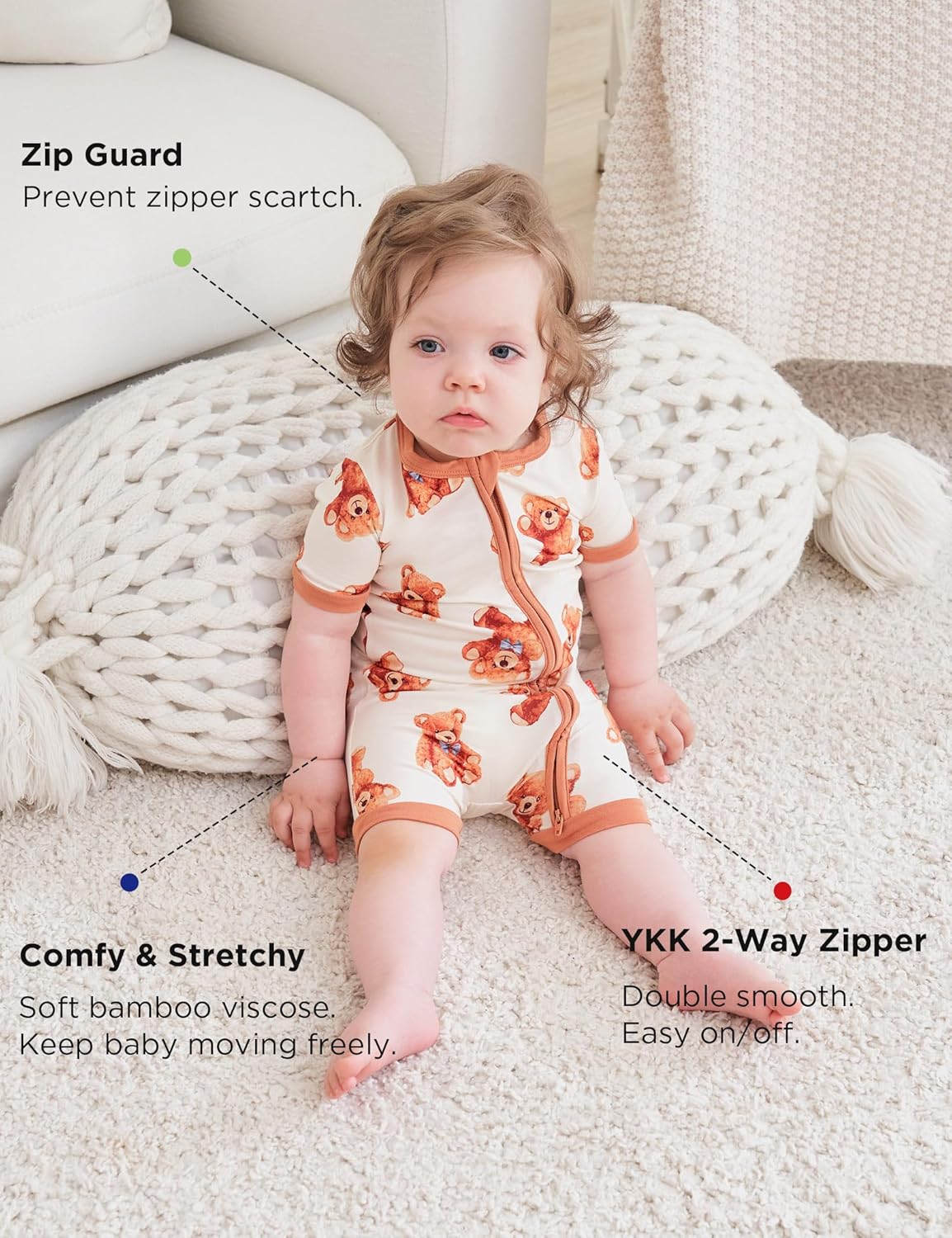 • The zipper is closed at the bottom, easy to put on the cloth even for struggling babies. Zipper guard to protect baby's delicate skin.
