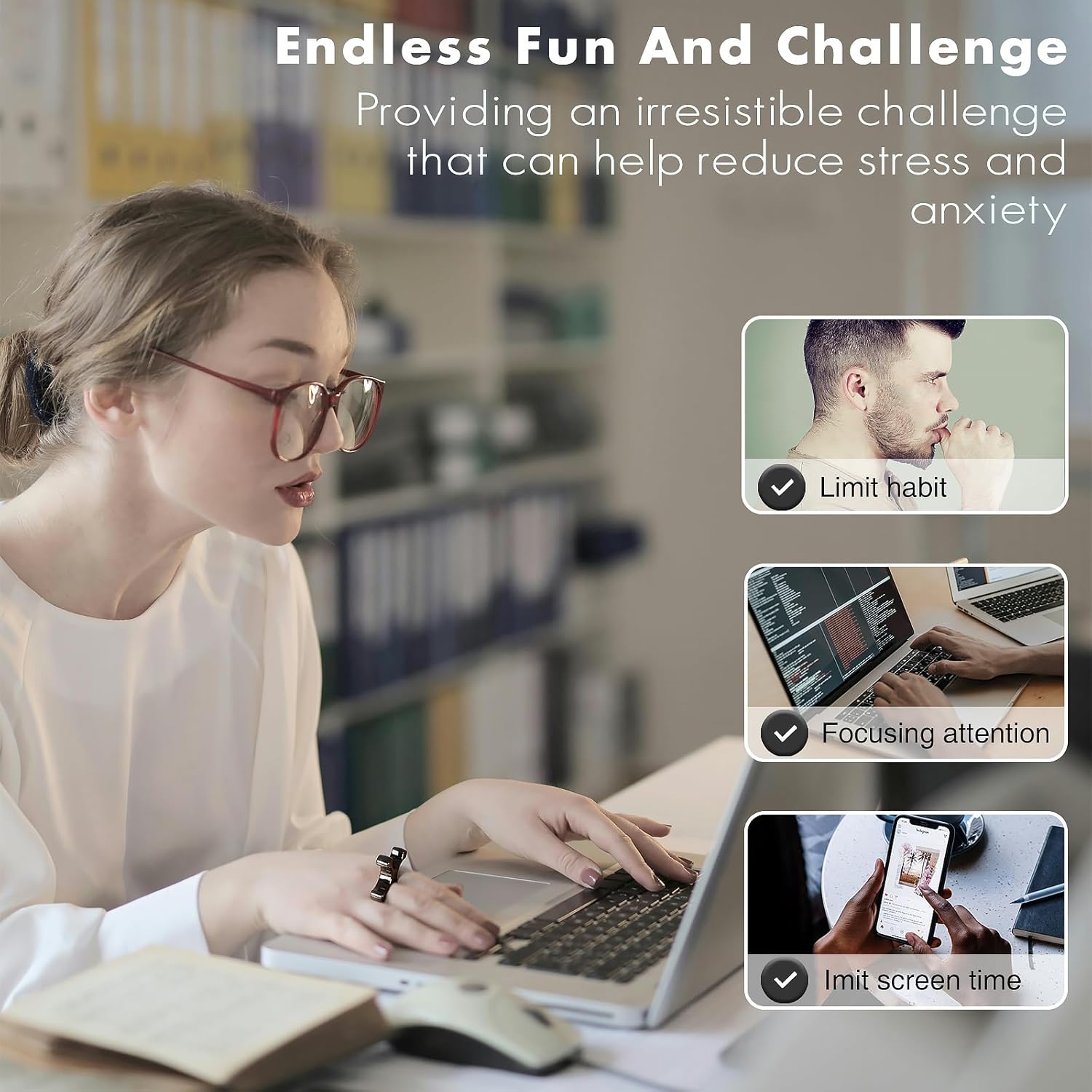 - PREMIUM PORTABLE FIDGETS: Crafted with quality metal, finished with black nickle, this fun fidget ring is made to last, it's small enough to fit in any pocket, backpack or purse, portable and discreet! Whether you’re looking to relieve stress, improve concentration, or simply enjoy the satisfying motion of flipping and rolling, our innovative fidget toys for adults are the perfect companion for any occasion.