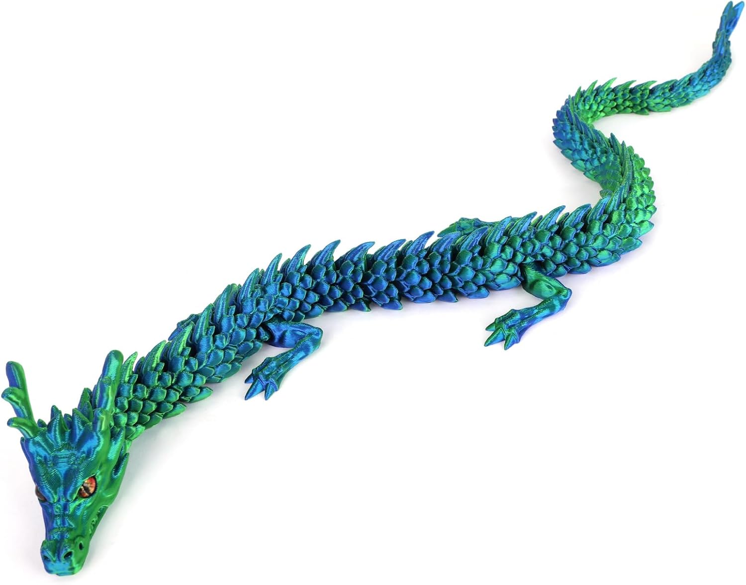 3D Printed Dragon, 17.7 Inch Articulated Dragon, Crystal Dragon, Dragon Fidget Toy, Home Office Decor Executive Desk Toys (Green)