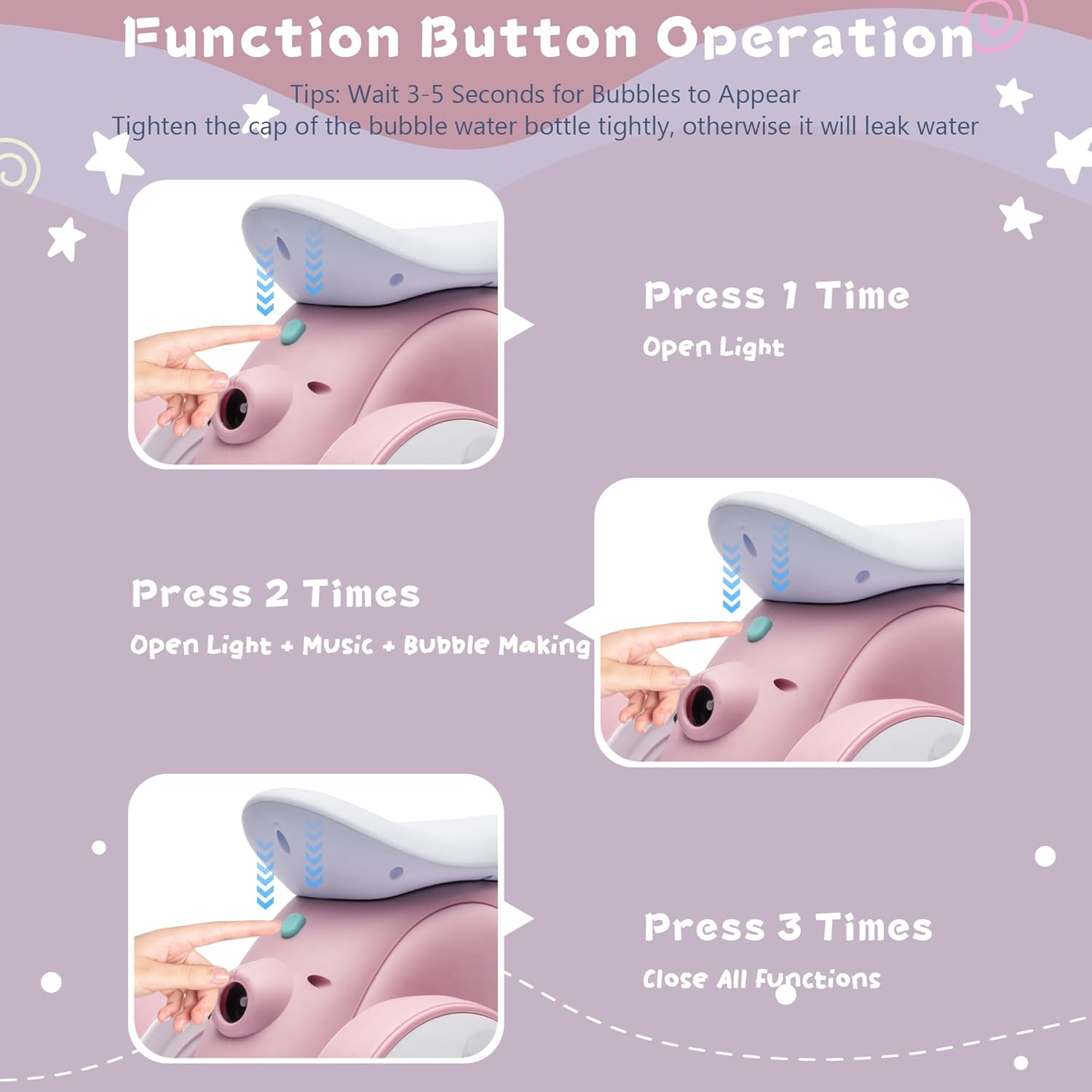 - Ensuring Safety First: Our electric baby balance bike with bubble maker ride on toy not only promotes fitness and balance in young children but also encourages babies to utilize their legs, thereby strengthening leg muscles and establishing healthy exercise habits from an early age. It fosters balance, coordination, self-confidence, and independence. Featuring a lower floor-to-seat height, even the smallest tots can enjoy a smooth and secure ride-on experience.