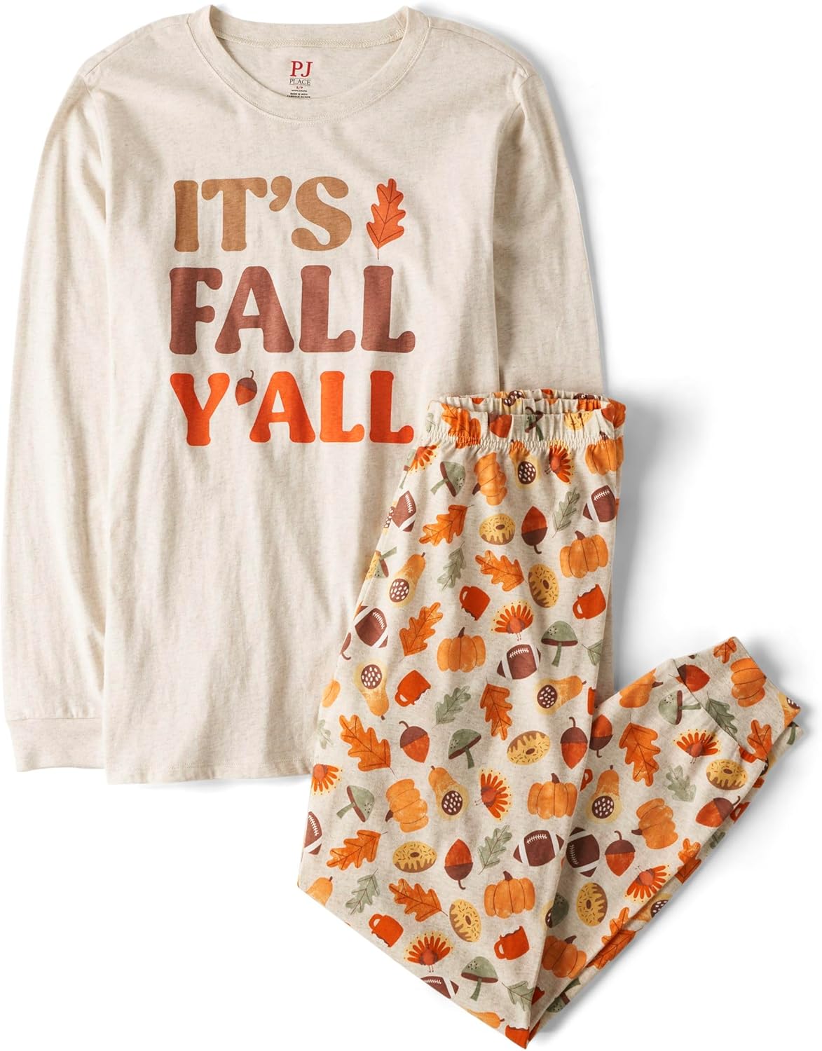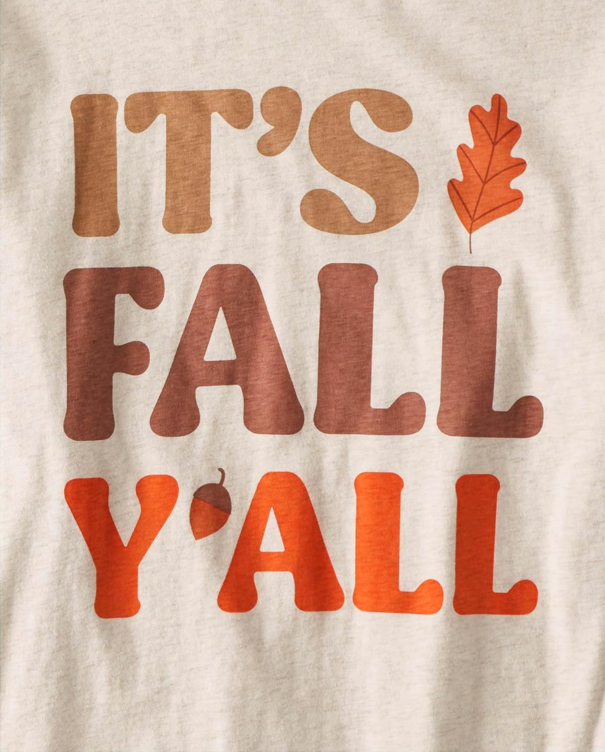 - PAJAMA TOP: Crew neck, long raglan sleeves, 'It's Fall Y'all' graphic design at front