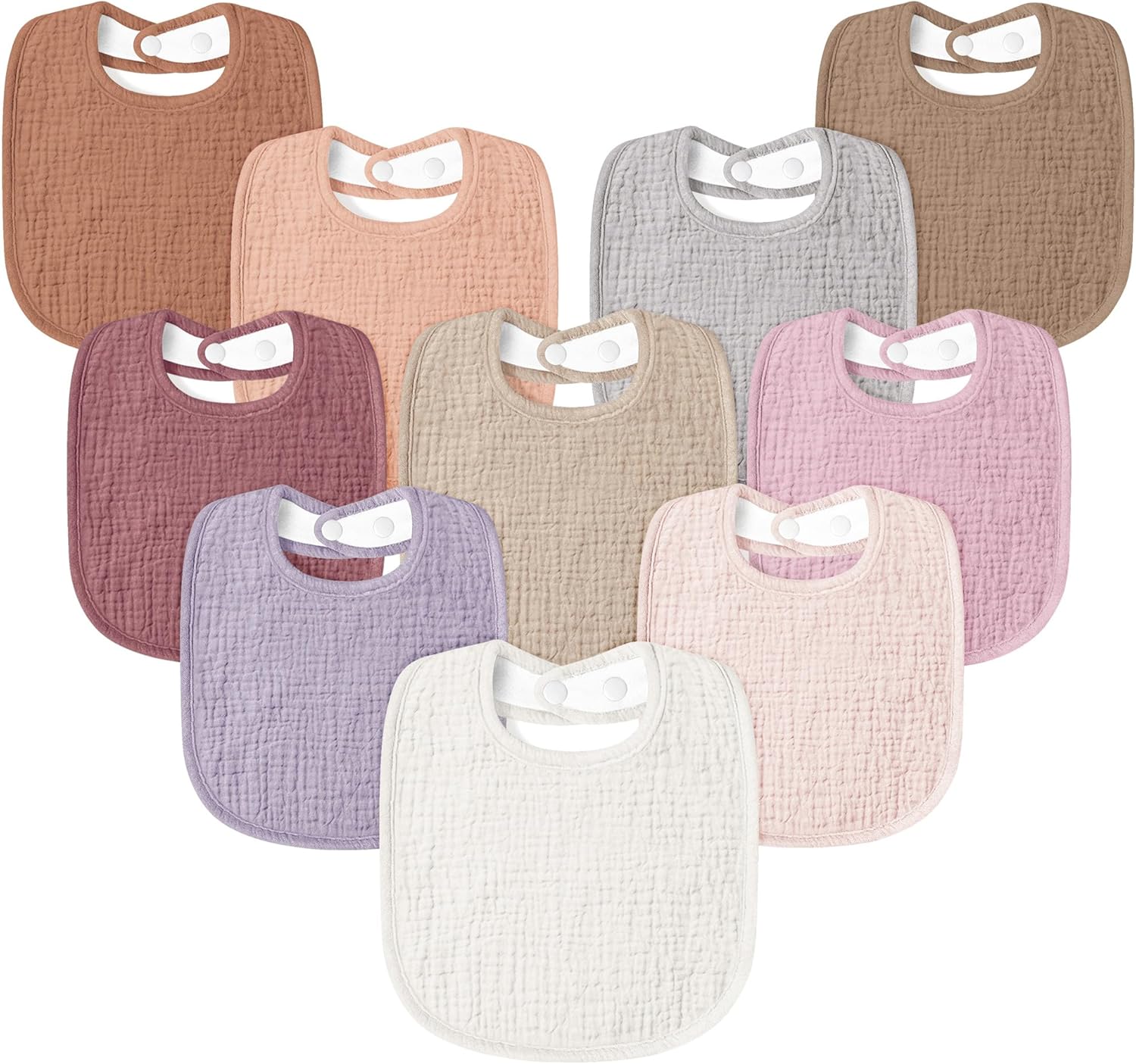 Susurration Muslin Baby Drool Bibs 10Pack Soft Square Adjustable Bandana Bibs for Unisex Baby Girls & Boys