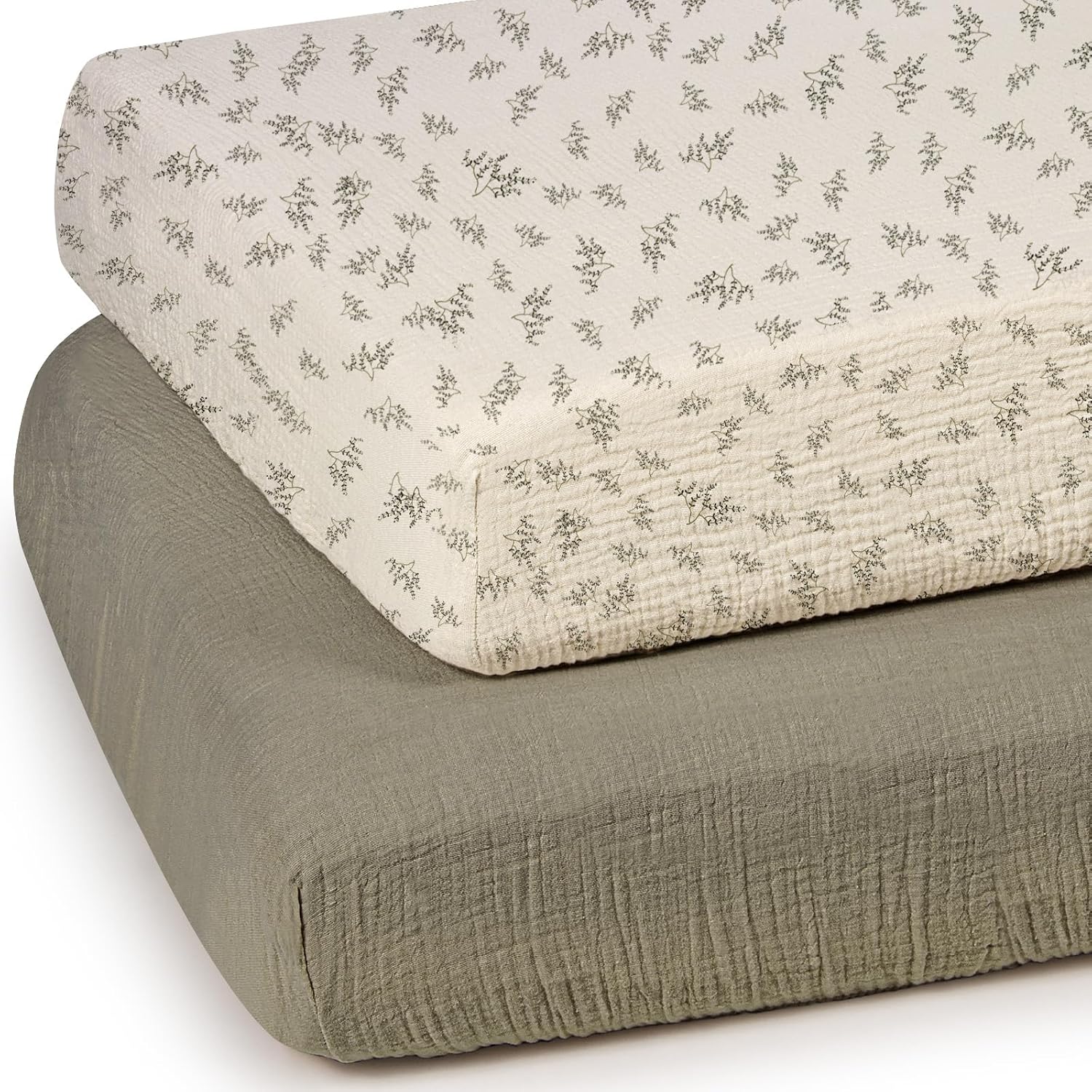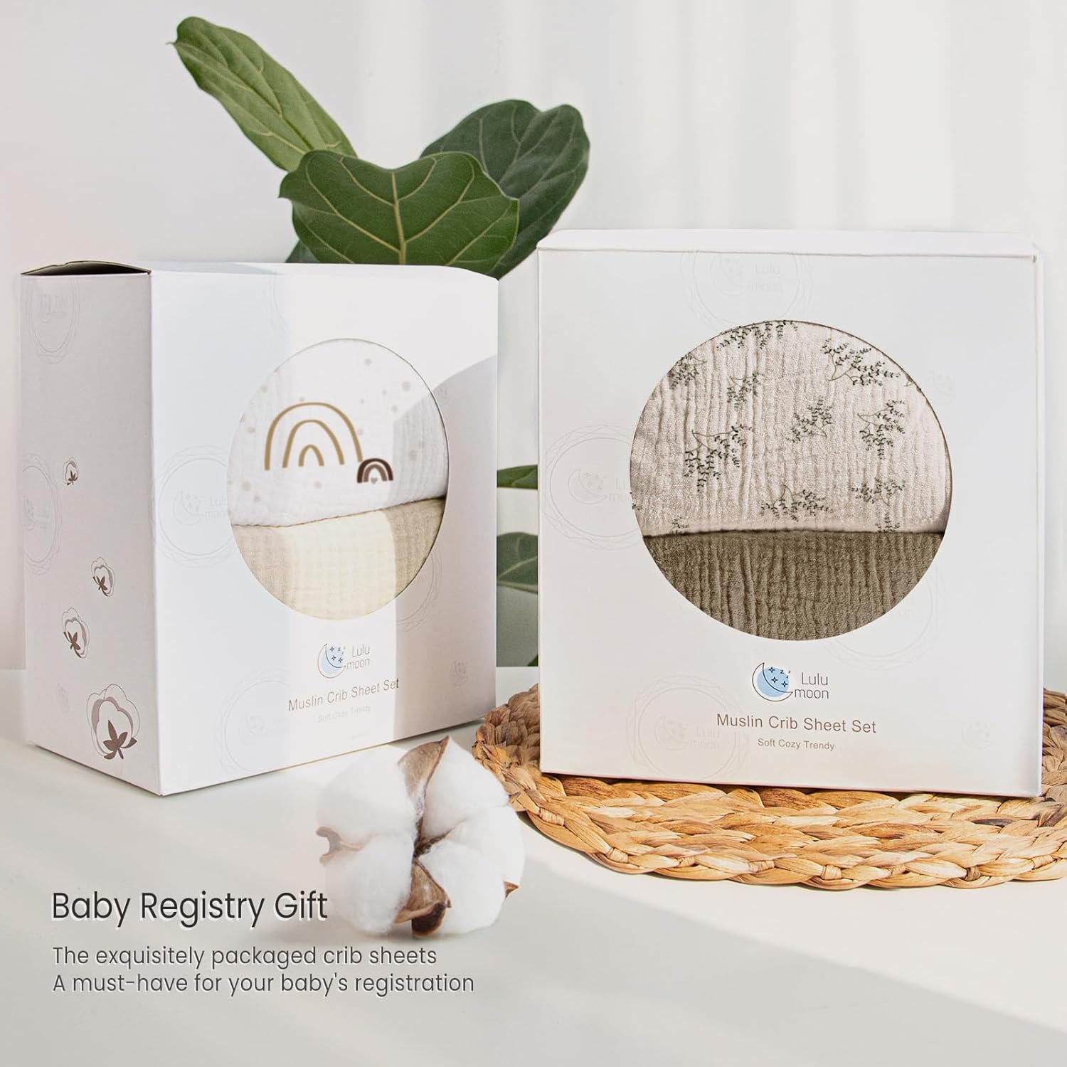 lulumoon Baby Muslin Crib Sheets - Toddler Cotton Fitted Crib Sheets Neutral for Boys and Girls 2Pack