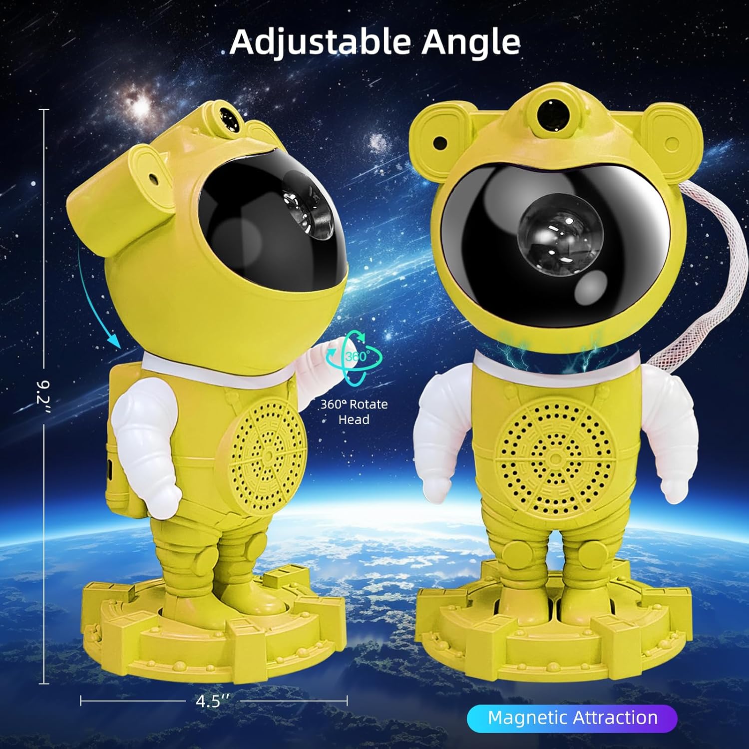 - Newest Upgraded Astronaut Projector:This galaxy projector lights for bedroom aesthetic has been upgraded to 5 in 1 device of starlight projector with moon, galaxy light, music speaker, white noise machine and night light. The light projector is based on red/green/blue/yellow, you could customize 15 galaxy colors combination, brightness and speed, and separately ON/OFF breathing stars and moon, then your bedroom will transfer into a magical starry sky world in seconds! Relaxing and it helps improve sleep.