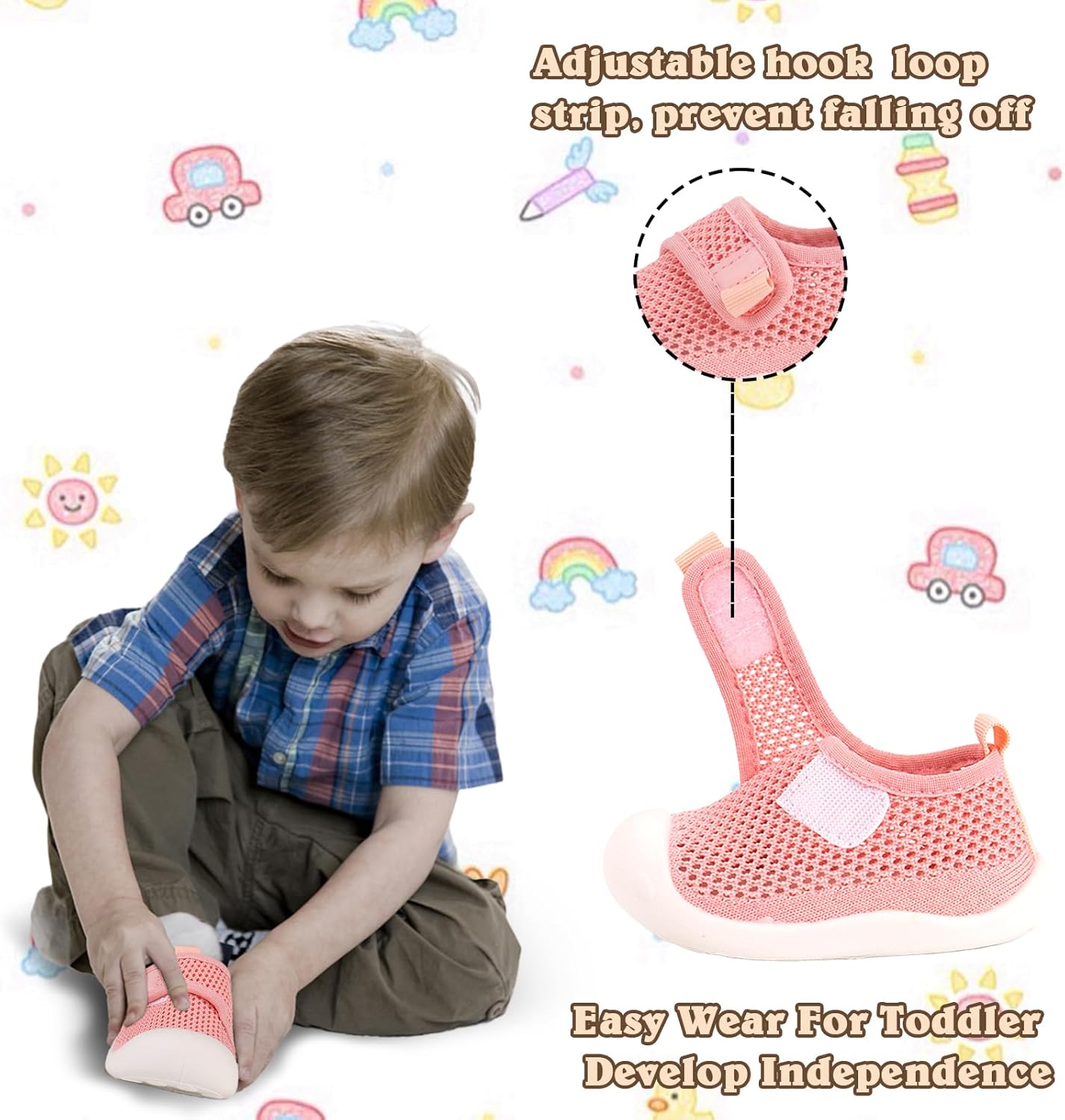 • Secure Fit for Unstoppable Explorers: Embrace the magic of hook and loop closures that effortlessly adapt to your child's foot, offering a snug embrace for every milestone. As toddler summer shoes, they combine breathability with no-lace ease, perfect for boys and girls, these shoes stay put through every jump, skip, and slide