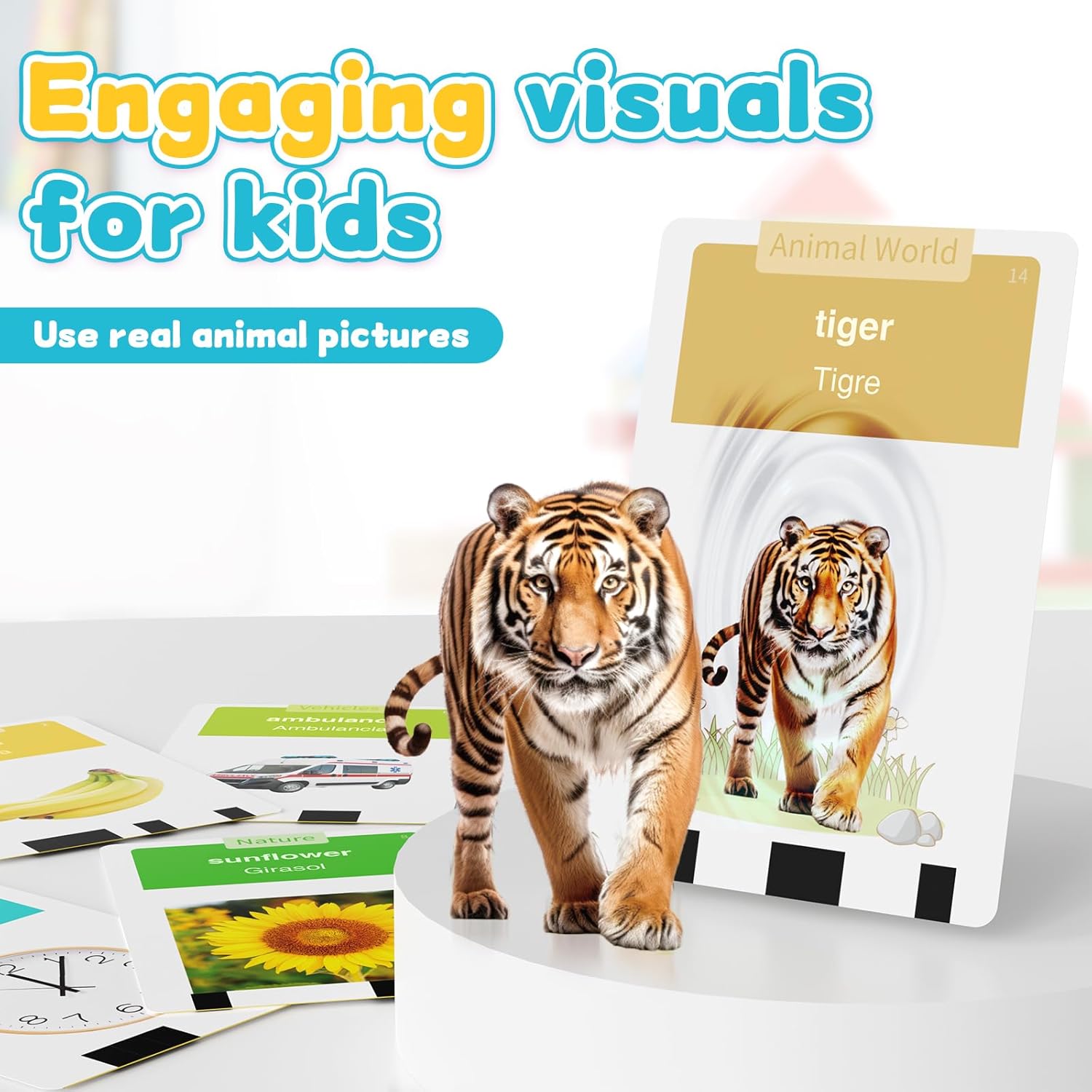 - Interactive and Captivating Design: The flash cards interactive design grabs children's attention and encourages active learning Covering a wide range of essential words it helps lay the foundation for strong bilingual literacy skills early on