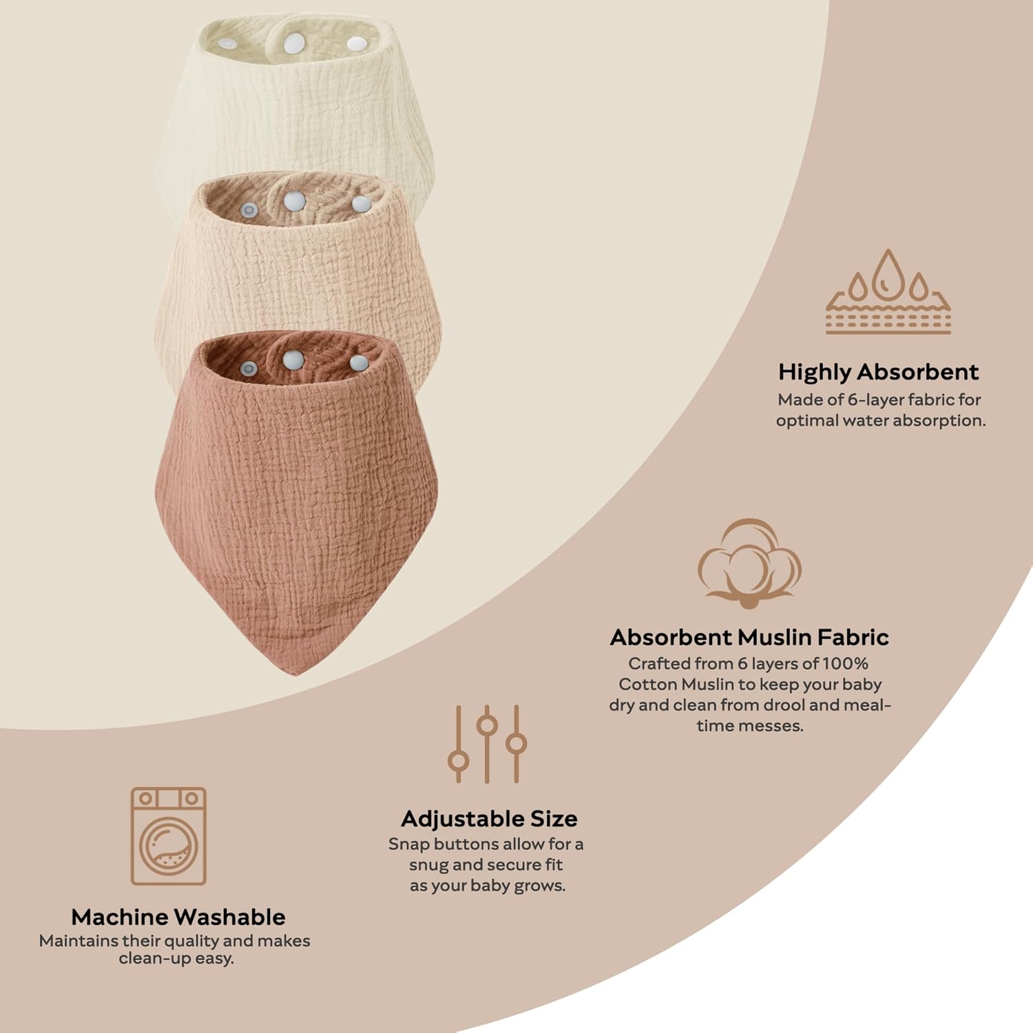 - Muslin Cotton Bandana Drool Bibs: Keep your baby protected from drools and spills with Muslin Cotton Bandana Drool Bibs. Made from 100% Cotton, soft and gentle muslin cotton, these bibs are comfortable and safe for your little one's delicate skin