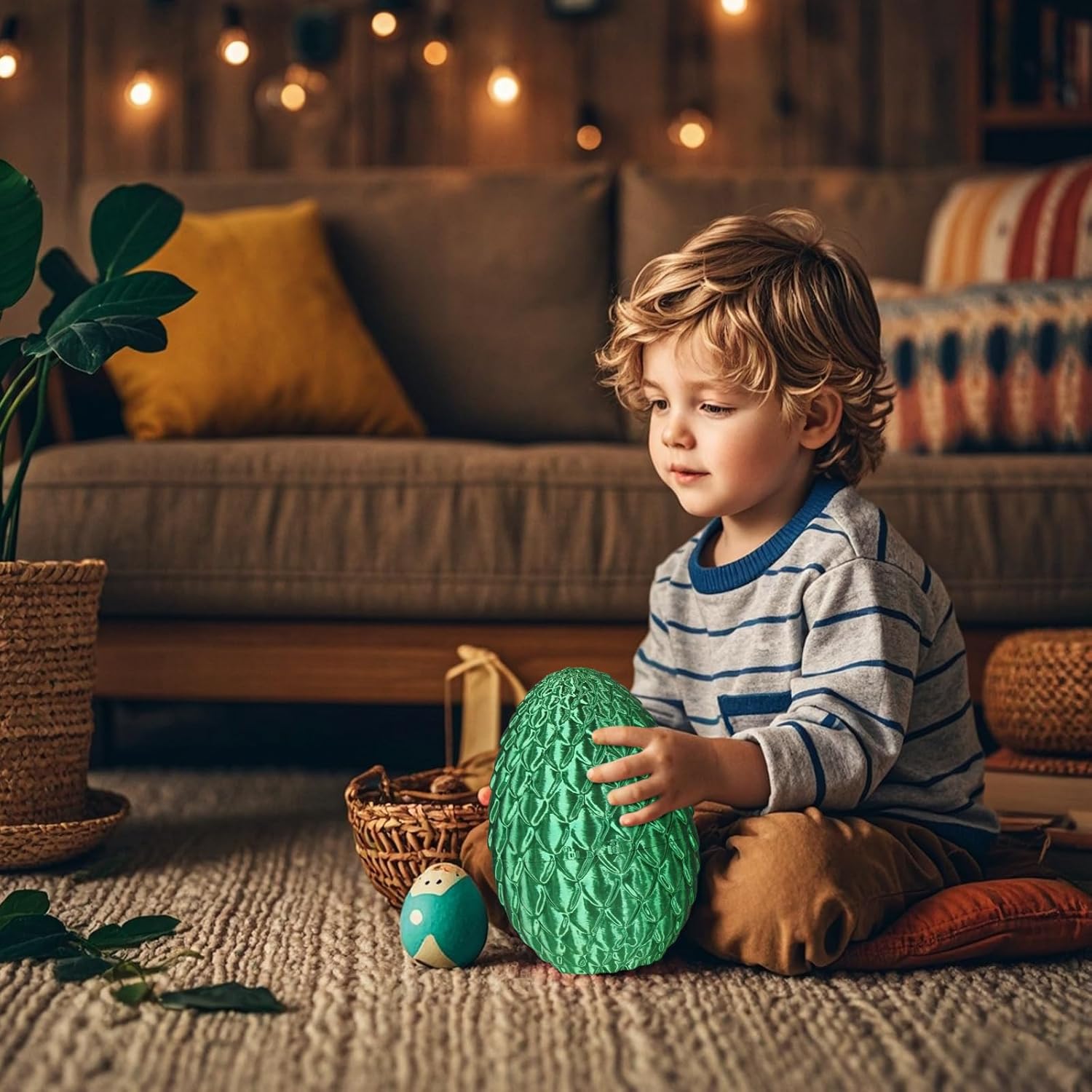Large Dragon Eggs with Dragon Inside, 3D Printed Surprise Funny Gifts for Kids, Articulated Dragon Fidget Toys for Adults, Executive Desk Toys Office Room Décor (Christmas Green)