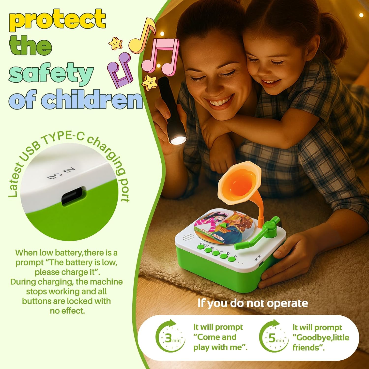 - Engage your child's imagination with this children's phonograph featuring 96 sound cards of nursery rhymes and fairy tales, perfect for toys for 4 year old boys and girls. A great alternative to Little Tikes Story Dream Machine Books or Baby Einstein Toys.