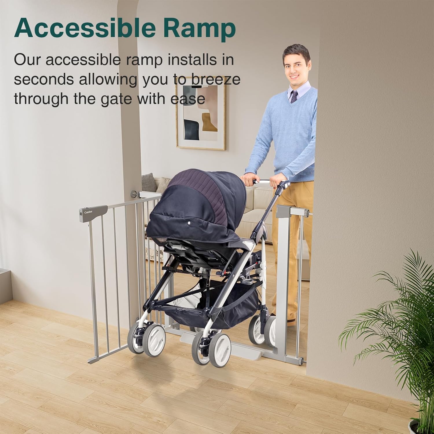 Cumbor 29.7-40.6" Baby Gate for Stairs, Mom's Choice Awards Winner-Dog Gate for Doorways, Pressure Mounted Self Closing Pet Gates for Dogs Indoor, Safety Child Gate with Easy Walk Thru Door, Silver