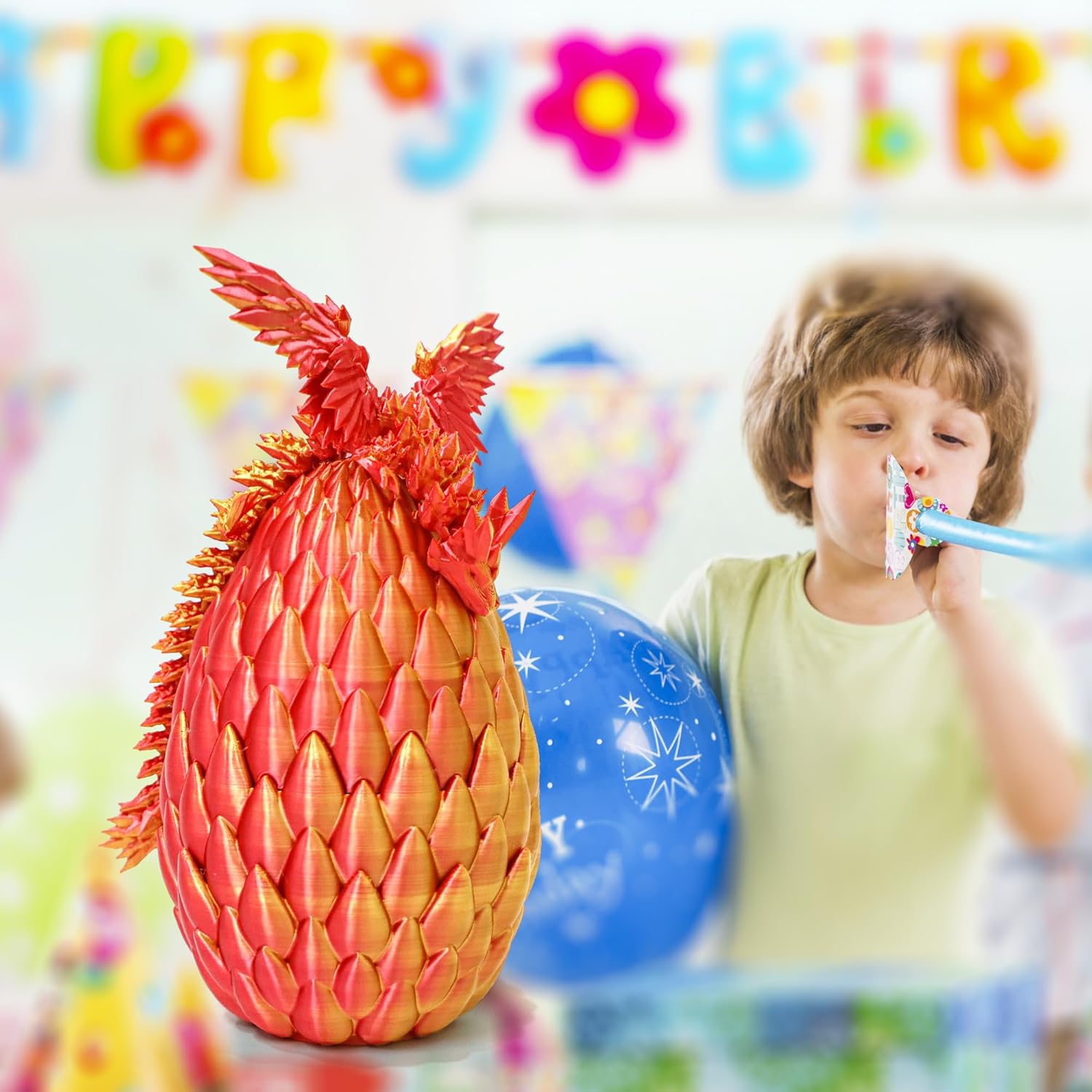 3D Printed Flying Dragon in Egg - Red Mix Gold - Surprise Egg with Flexible Winged Dragon Inside, Mystery Beautiful Fidget Toy, Birthday Gift, Desk Figure Decor