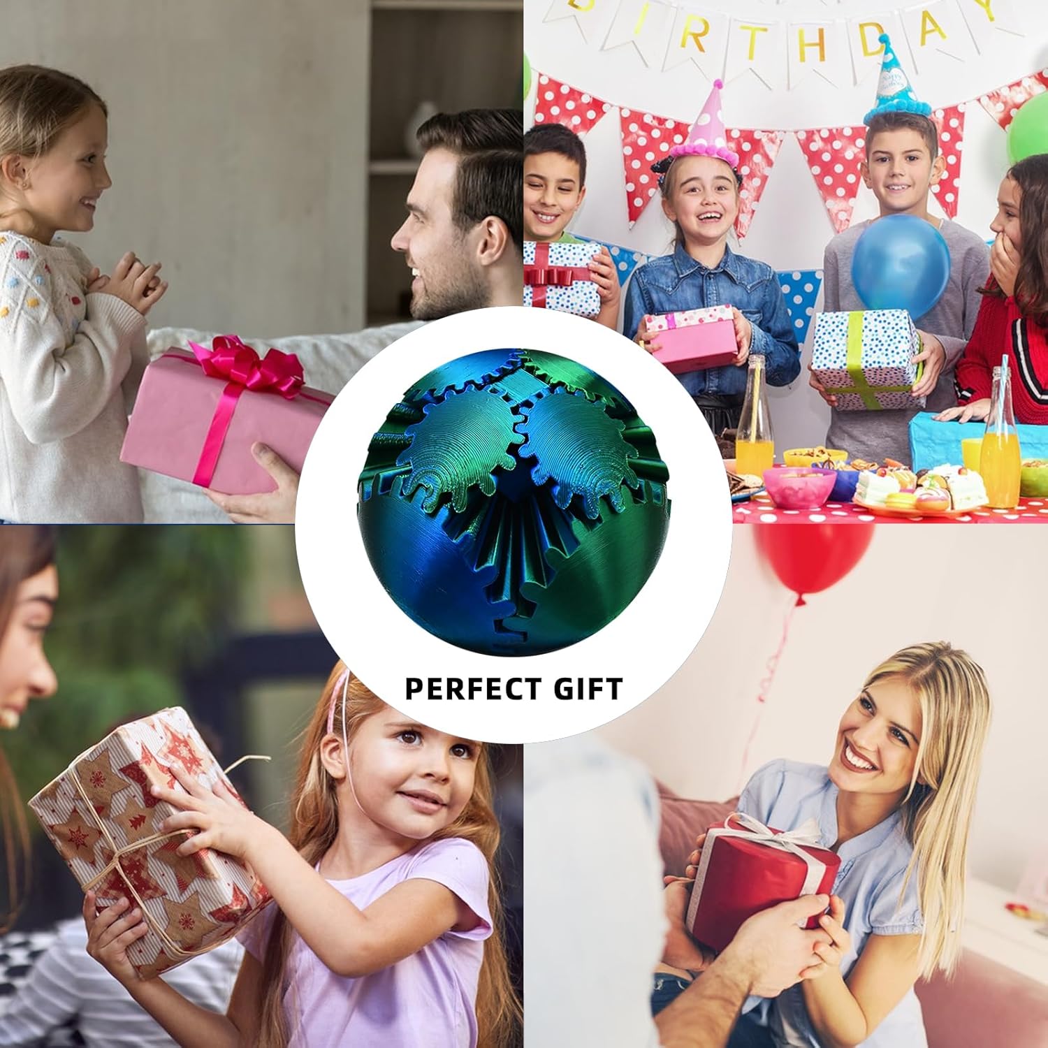 3D Printed Gear Ball,Funny Spin Ball Cube Fidget Toy,Activity Gear Sphere Fidget Spinner Hand Toy,Executive Desk Toys,Creative Gift (Green)