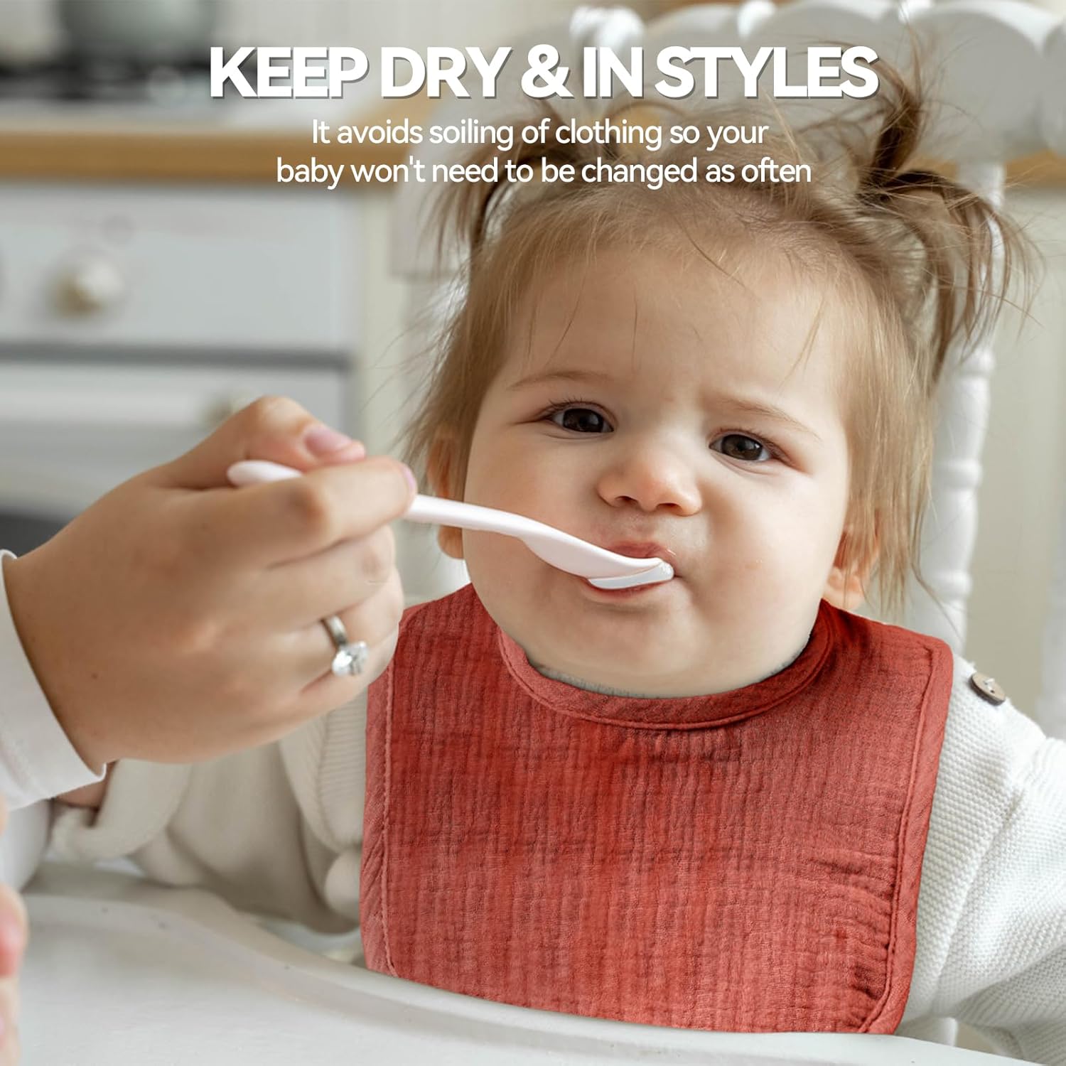 • Multiple Uses: Our cotton muslin baby bibs 0-36 months for drooling and teething are suitable for drooling, feeding, burping, and dealing with spills and messes. They can also be used for bathing and as a face towel. You can even carry them with you as a handkerchief. Natural organic cotton is suitable for all skin types, including sensitive skin.