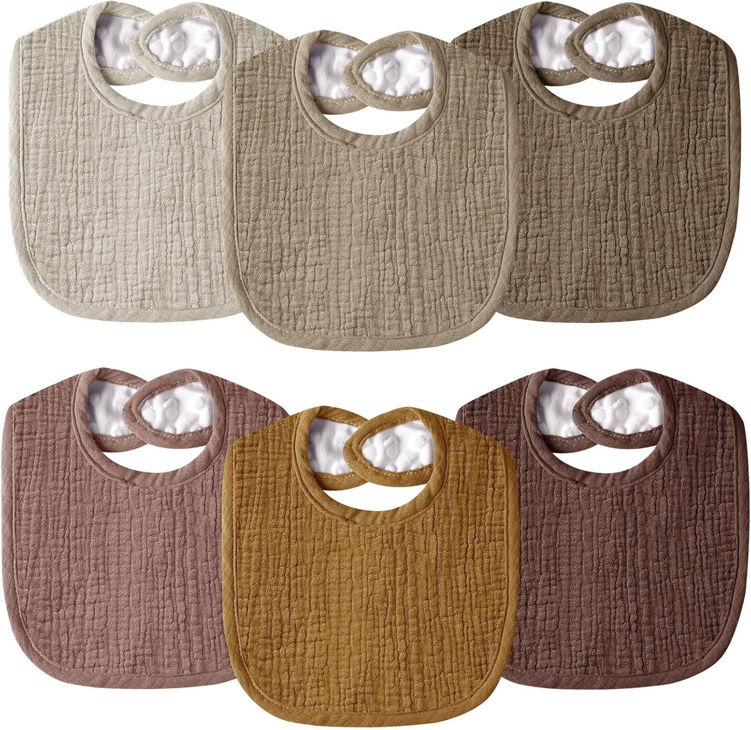 - Set of 6 Unisex Colors: Our toddler muslin bibs for boys and girls are carefully selected neutral colors, suitable for both boys and girls, and can be easily matched with any outfit. You can choose newborn bibs that suit your baby's outfit for the day.