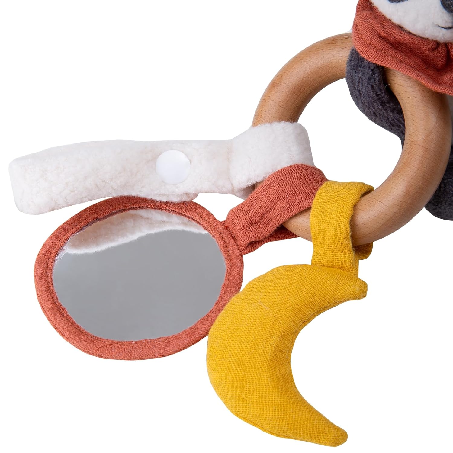 - Sensory Development: The plush animal panda that makes a sound when shaken comes with a variety of items: detachable organic FSC wooden ring, cloth ring with button, safe and soft mirror, lovely curved moon, effectively stimulating baby's sense of touch, hearing and other sensory systems during playtime.