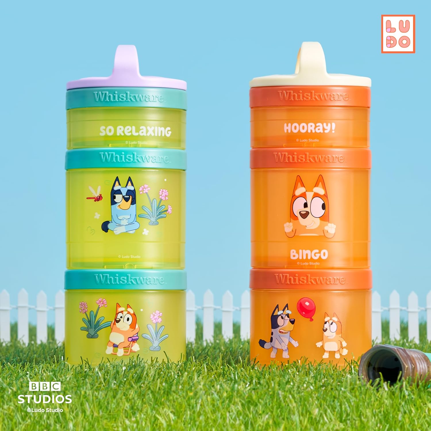 Whiskware Bluey Stackable Snack Containers for Babies, Toddlers, and Kids, Durable Food Storage Containers for Daycare, Car, and Airplane Travel, Formula Friendly, Bluey and Bingo (Pack of 2)