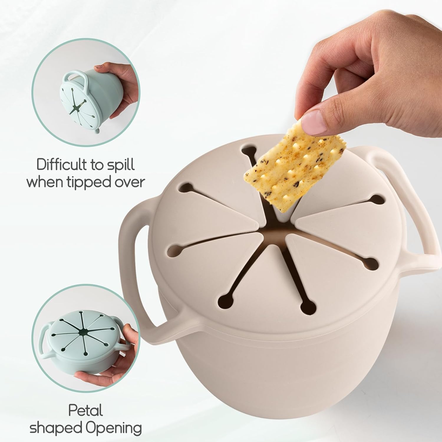 - Spill Proof and Convenient: These silicone snack cups for toddlers feature a flexible, petal-like opening to prevent spills and allow easy access to snacks. Their collapsible design makes them good for travel and storage.