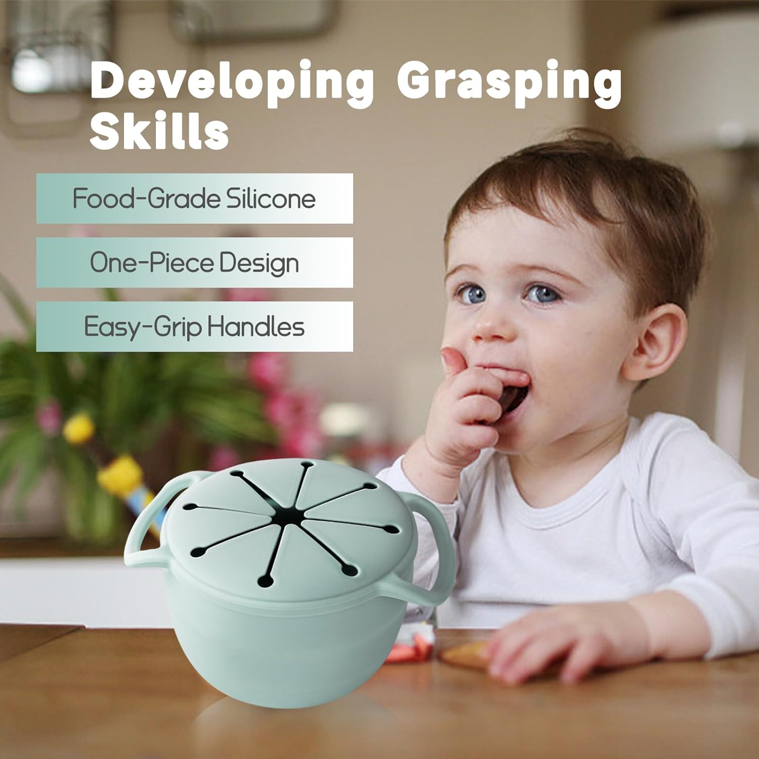 - Safe and Non-Toxic: Made from 100% food-grade silicone, these baby snack containers are free from BPA, PVC, and phthalates. Rest easy knowing that your toddler's hands will be safe from sharp edges while they reach for their snacks, providing a worry-free snacking experience.