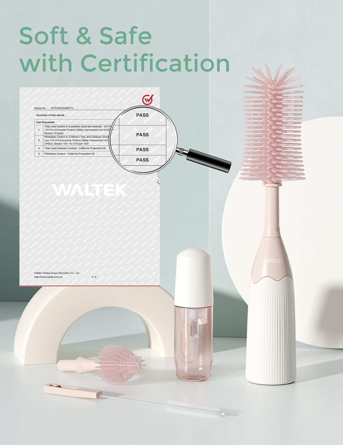 Momcozy Bottle Brush Kit, Innovative Push-Press Design for Better Cleaning - Baby Bottle Cleaner Brush for Baby Bottle, Breast Pumps, Nipples, and More - Can Generate Foam for Better Cleaning, Pink
