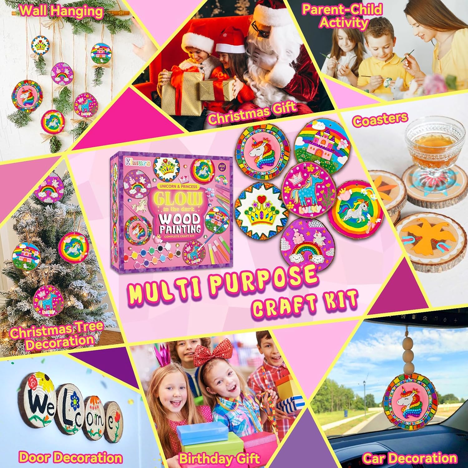 - 【Creative kids Activities】:Unleash the magic of creativity with Klmars Glow-in-the-Dark Wood Painting Kit! Designed for unicorn lovers, girls, and kids age 6-12, this enchanting craft kit is the perfect parent-child activity that combines fun and imagination.