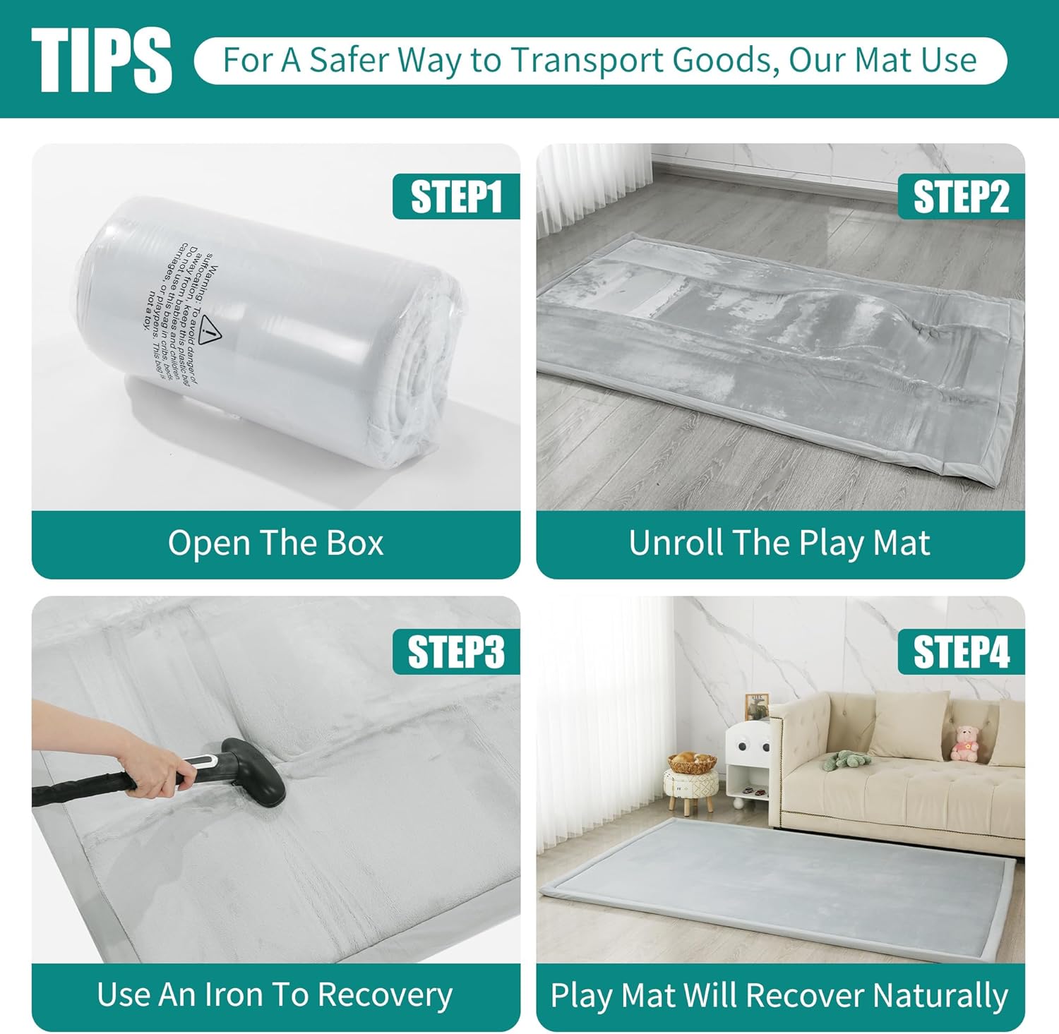 - 【Easy to care 】: The 74x50 inch playpen mat can be folded to easily store your playpen mat. When you open it, it has creases, bumps. Don't worry, you can recover your playpen mat with steam or ironing