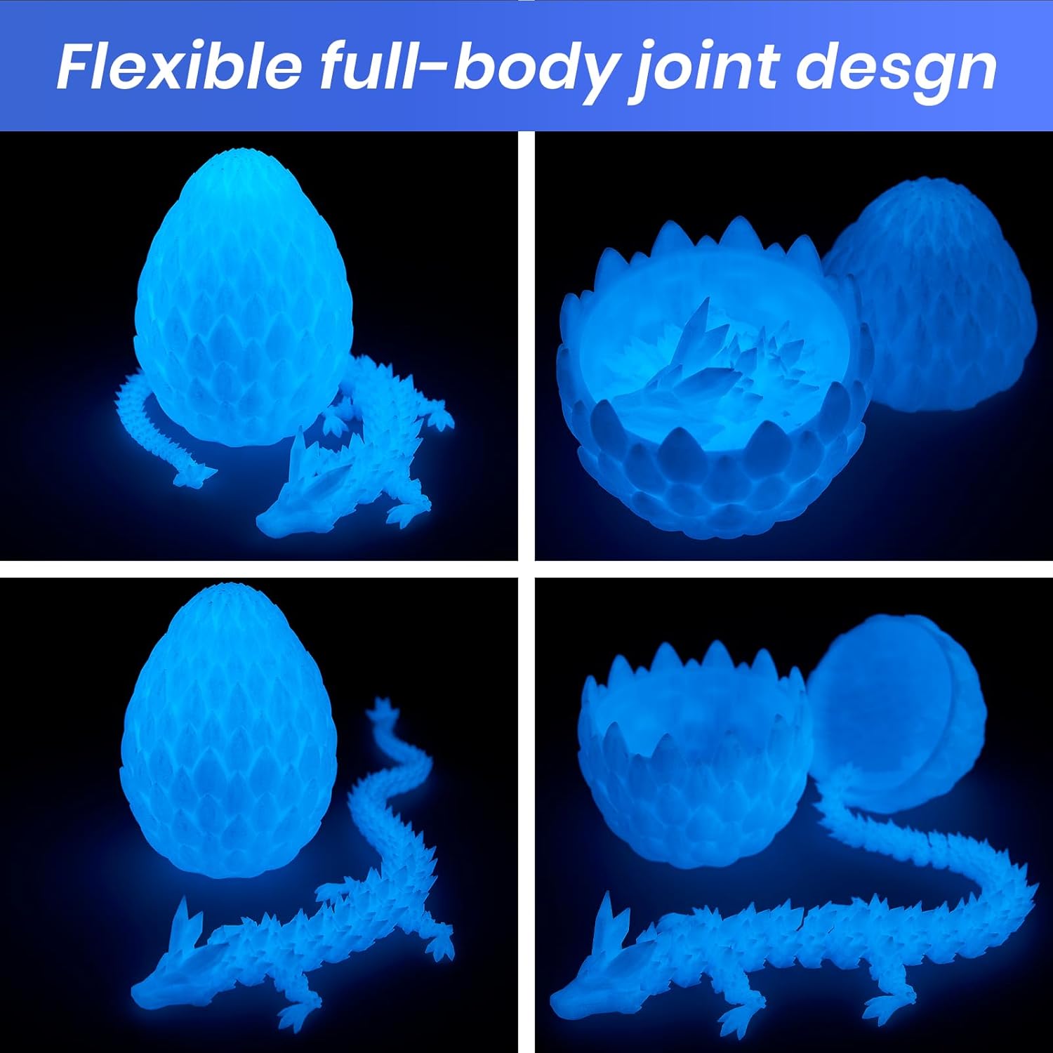 Dragon Egg,15 inchs Crystal Dragon,Articulated Dragon, Fidget Toys for Autism/ADHD,3D Printed Gift Toy, Executive Desk Toys,Home Office Decor (Luminous Blue)
