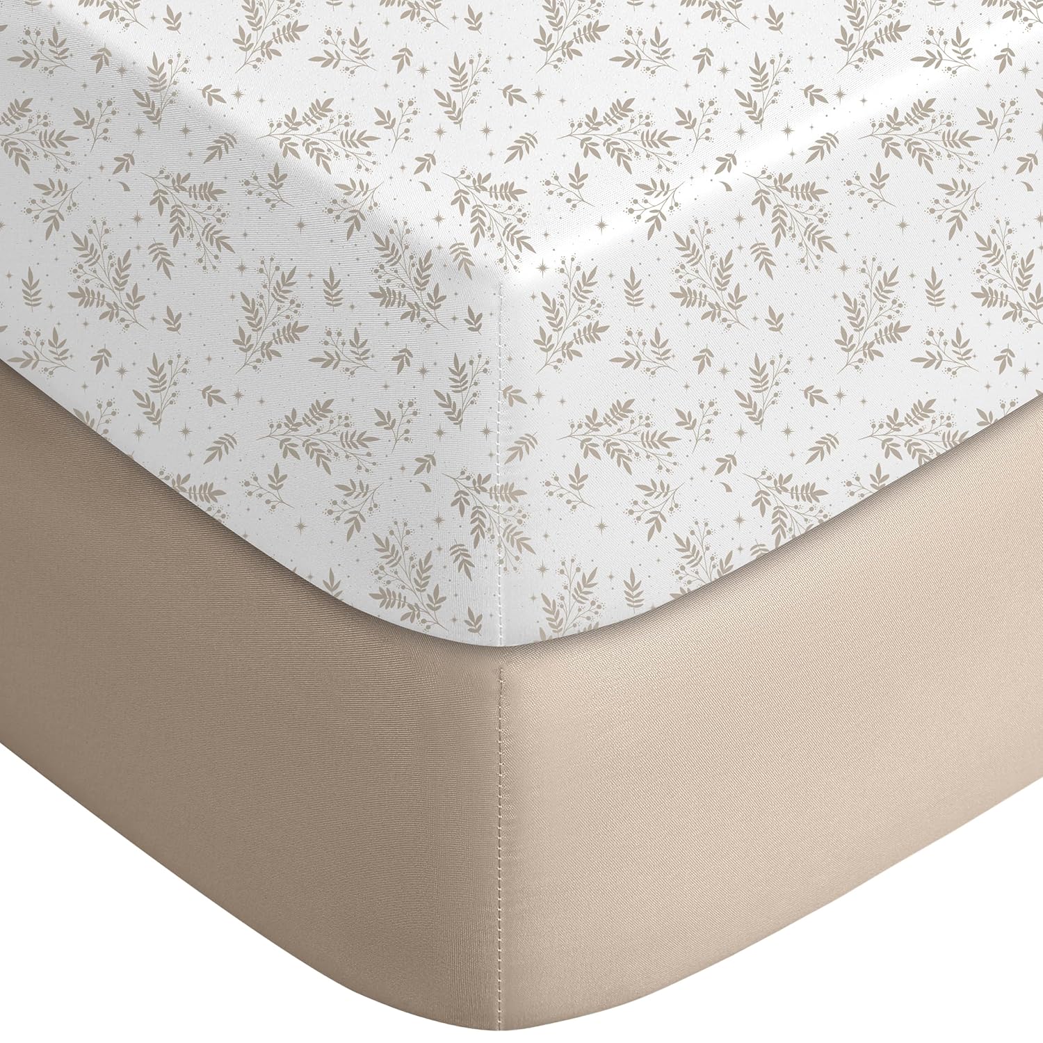 Yoofoss Baby Crib Sheets for Boys Girls, Fitted Crib Sheet 2 Pack for Standard Crib and Toddler Mattress, Super Soft Microfiber Baby Sheet 28x52x8in(Brown+Leaf)