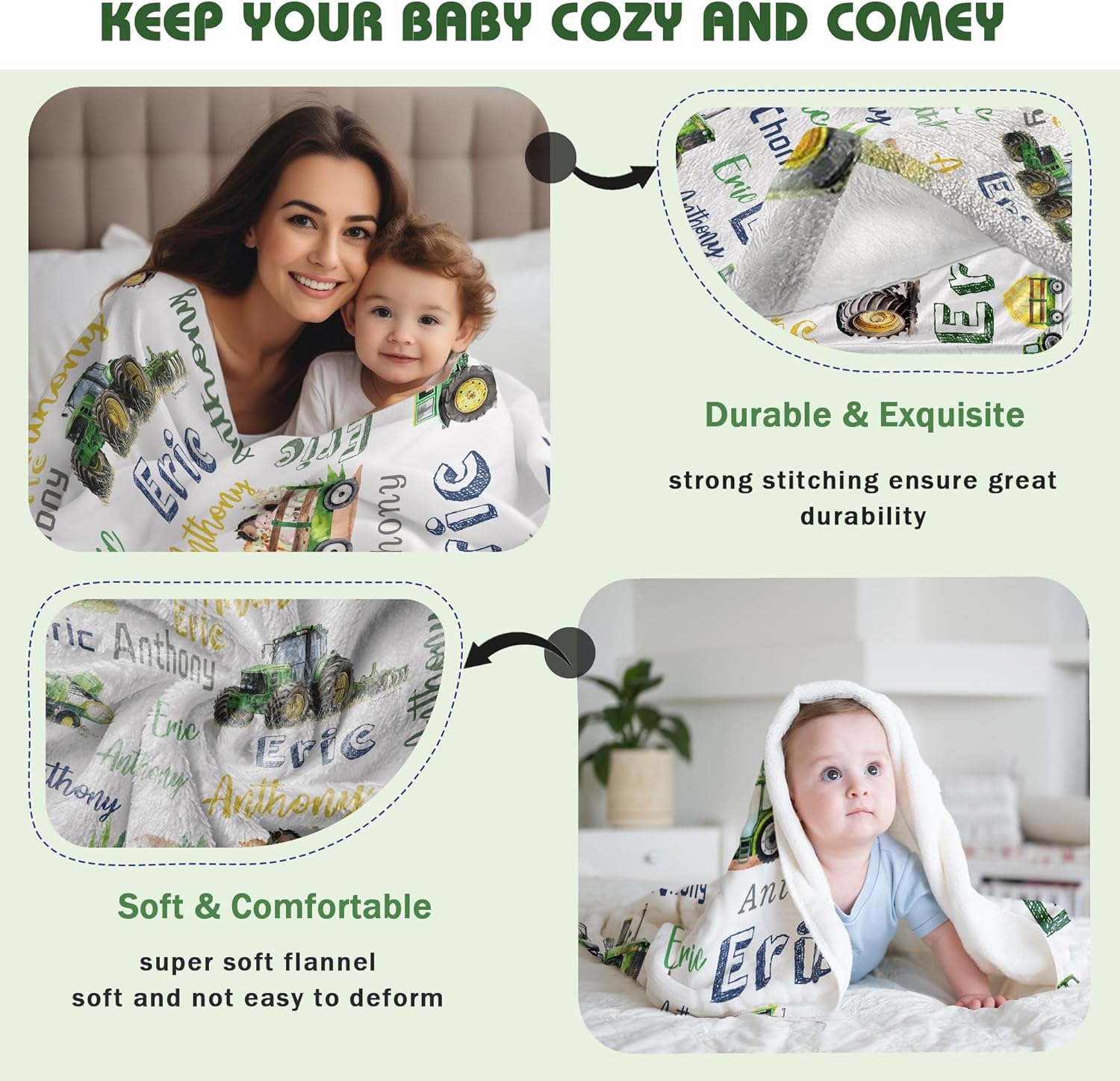 Personalized Blanket for Boy Newborn Custom Tractor Baby Blanket with Name Customized Gift for Baby Shower Christmas Birthday Gifts