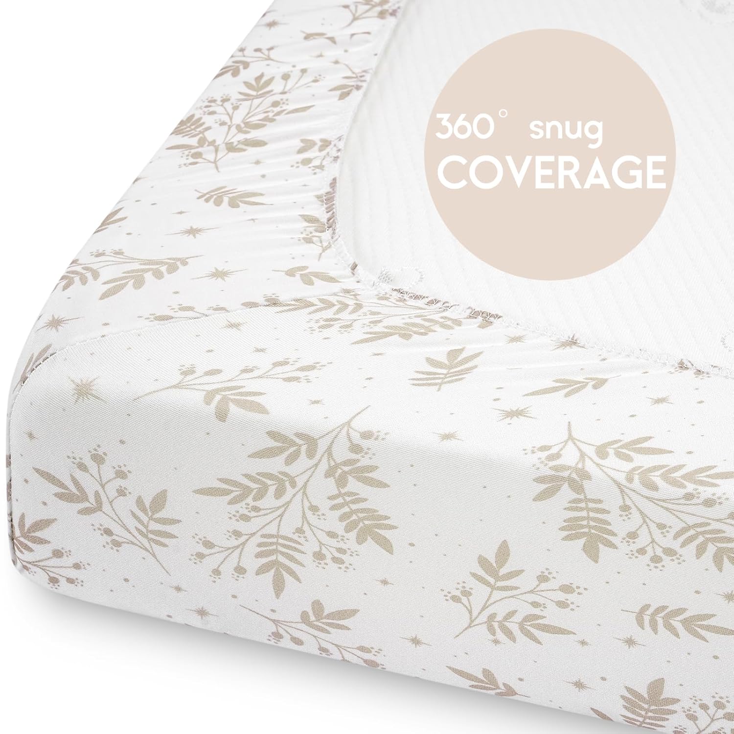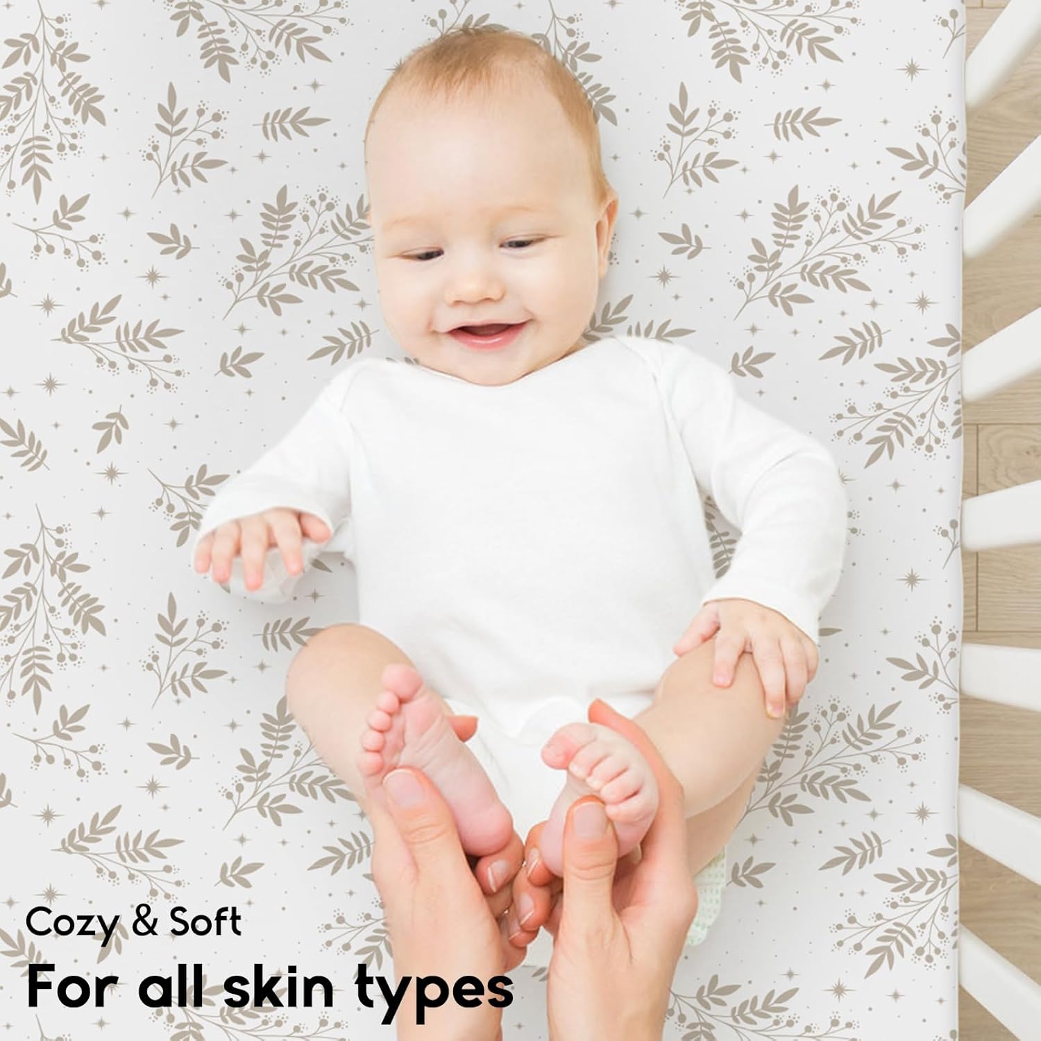 Yoofoss Pack and Play Sheets Fitted, Mini Crib Sheets 2-Pack for Pack N Play Mattress, Stretchy Playard Sheet, Soft and Breathable Brown+Leaf