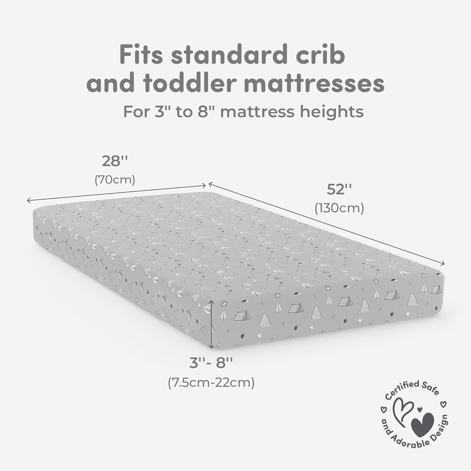 - Perfect Fit for All Crib Sizes: Each set includes two crib sheets that are designed to perfectly fit standard crib mattresses (52” x 28”) as well as mini cribs and toddler beds. The sheets fit mattresses with a height of 3” to 8”, ensuring a snug and secure fit.