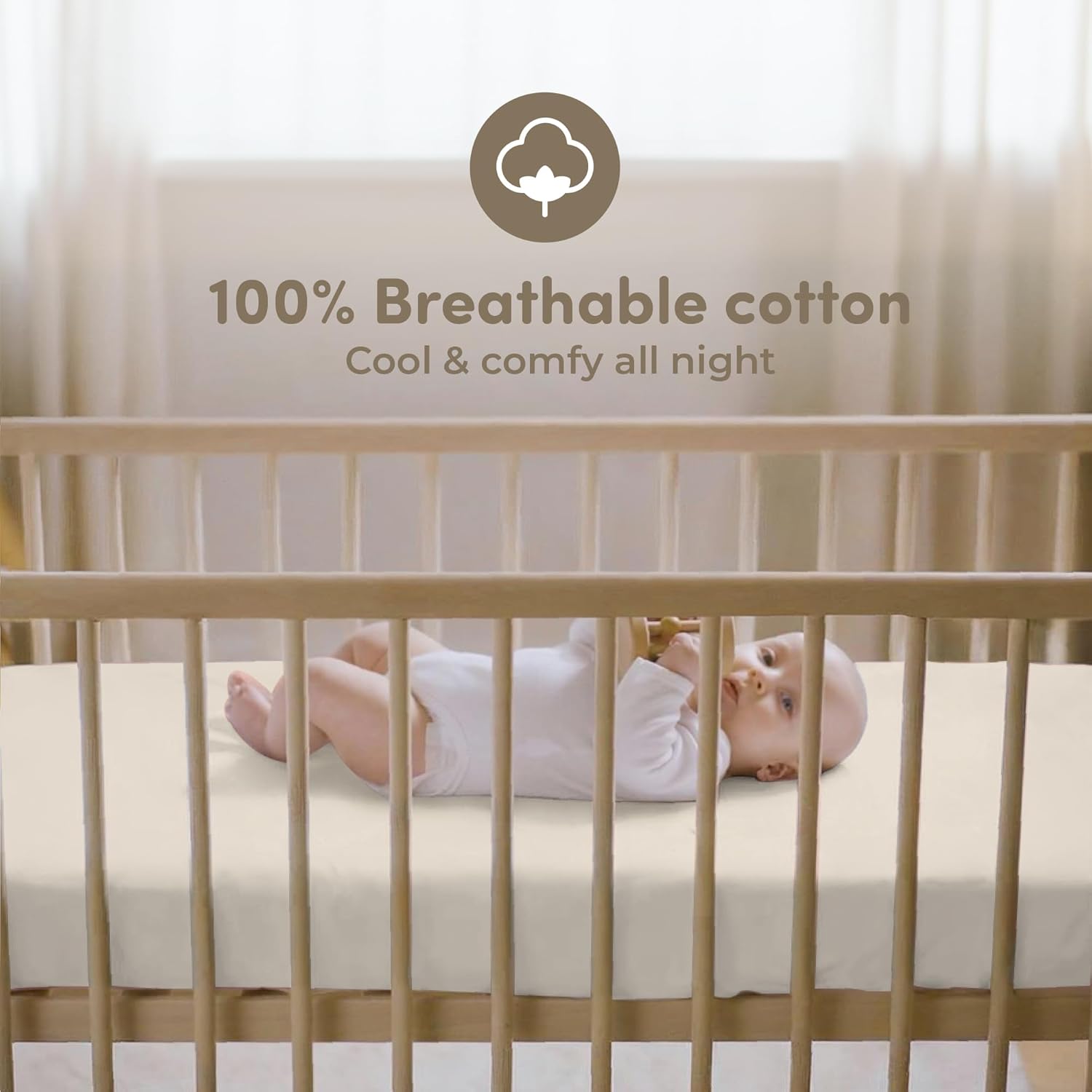 - Soft & Gentle on Baby’s Skin: Crafted from 100% premium jersey cotton, these crib sheets offer a soft and breathable surface, ideal for keeping your baby comfortable during sleep. The fabric is gentle on even the most sensitive skin, making it perfect for newborns and toddlers alike.