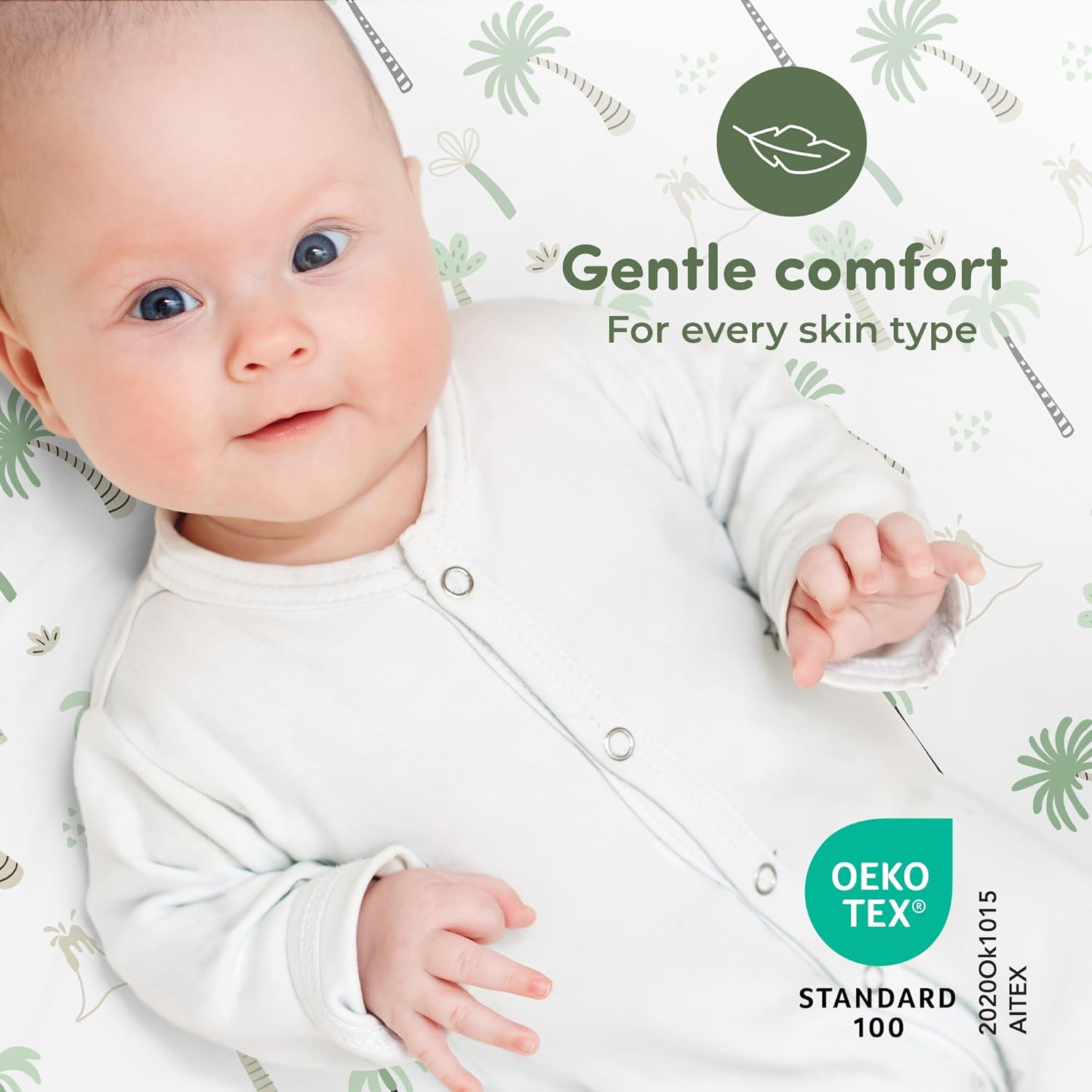 - Soft & Gentle on Baby’s Skin: Crafted from 100% premium jersey cotton, these crib sheets offer a soft and breathable surface, ideal for keeping your baby comfortable during sleep. The fabric is gentle on even the most sensitive skin, making it perfect for newborns and toddlers alike.