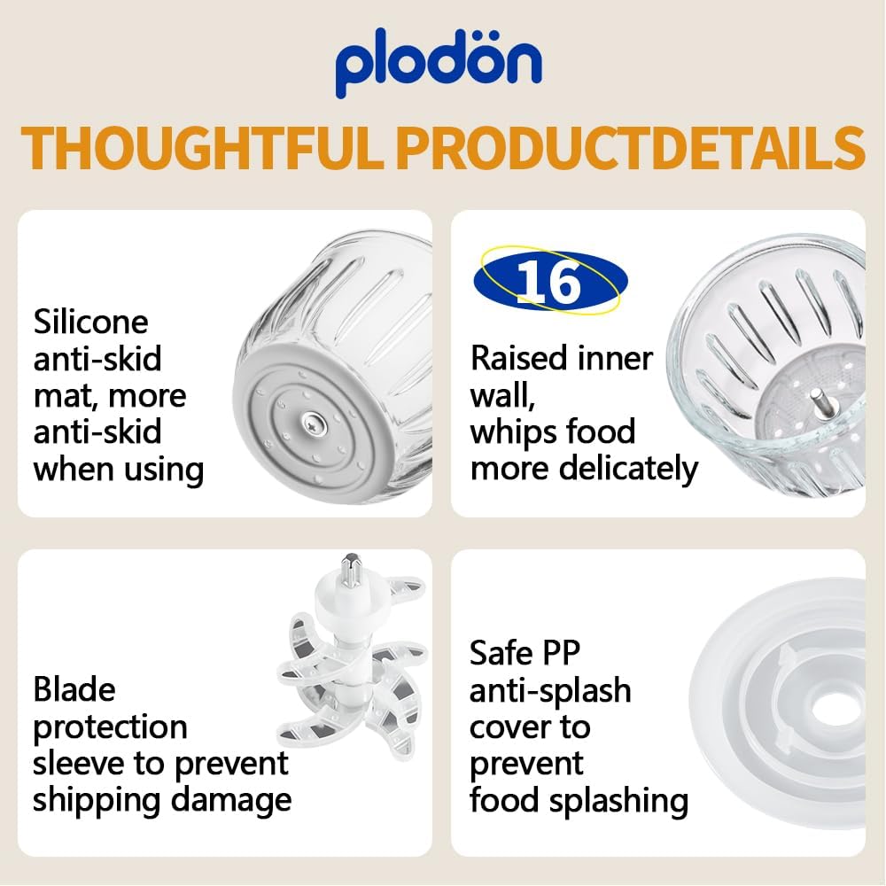 - Baby Food Processor-- Packing List:motor*1,glass bowl*1(10OZ),blades*1,splash cover*1,scraping spoon*1,operating manual*1